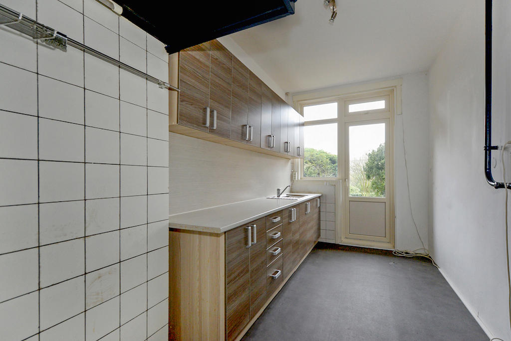 Entree, hal voorzien van toilet. Fraaie en riante woon-/eetkamer met vrij uitzicht en visgraat parketvloer met bies en openslaande deuren naar het balkon. 2 (kleine) slaapkamers aan de voorzijde. Nette keuken met onder en boven kasten en toegang tot het balkon aan de achter zijde. Riante slaapkamer aan de achterzijde met openslaande deuren naar het balkon. Badkamer voorzien van een douchebad, vaste wastafel. Balkon over de volle breedte van de woning.