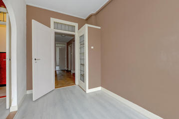 Afgesloten entree met brieven- en bellentableau, hal met lift en trap naar de 1e verdieping.