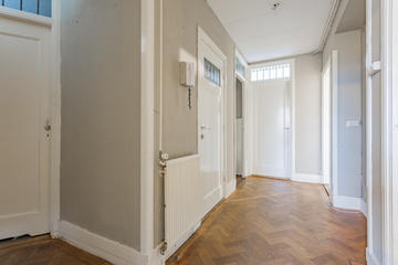 Vestibule; Hal met toilet; Fraaie en riante woon-/eetkamer en suite met suiteseparatie met vier vaste kasten en schuifdeuren met glas in lood, vrij uitzicht, visgraat parketvloer met bies, 2 marmeren schouwen en openslaande deuren naar het balkon over de volle breedte van het appartement, met twee balkonkasten (in een van de kasten is de c.v.-combiketel opgesteld); Moderne keuken (vernieuwd in 2016) met inbouwapparatuur: koelkast met vriesvak, oven, vaatwasser, 5 pits gaskookplaat met wokbrander, afzuigkap en toegang tot het balkon; Riante slaapkamer aan de achterzijde met openslaande deuren naar het balkon en toegang (tevens vanuit de hal te bereiken) badkamer voorzien van een ligbad met douche, wastafel en wasmachine aansluiting; Slaapkamer 1 aan de voorzijde met vaste kast en wastafel; Slaapkamer 2 aan de voorzijde met vaste kast.
