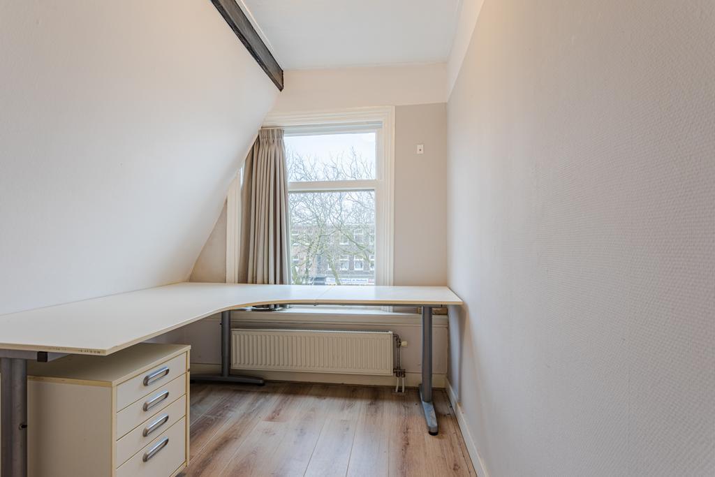 Entree op straatniveau; gang met lambrisering, glas in lood bovenlicht; trap naar de eerste verdieping; centraal gelegen overloop voorzien van laminaatvloer en paneeldeuren; betegeld toilet; nette verzorgde betegelde doucheruimte met wastafel; zeer lichte en sfeervolle woon/eetkamer over de volle lengte met bijgetrokken voorzijkamer (zeer handig voor thuiswerkplek), Frans balkon met openslaande deuren aan de voorzijde; keurige open keuken voorzien van laminaatvloer, 5 pits gaskookplaat, oven koelkast met vriesgedeelte en ingebouwde vaatwasser; heerlijk zonnig dakterras gelegen op het westen met namiddag en avondzon.