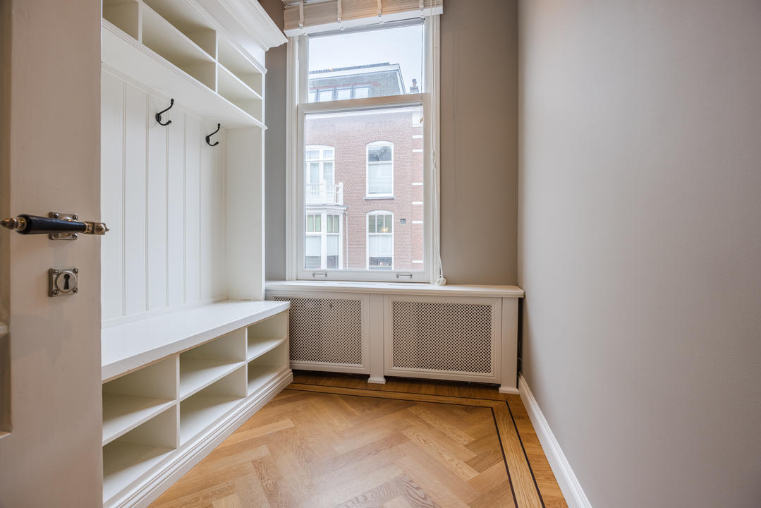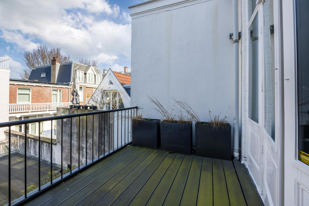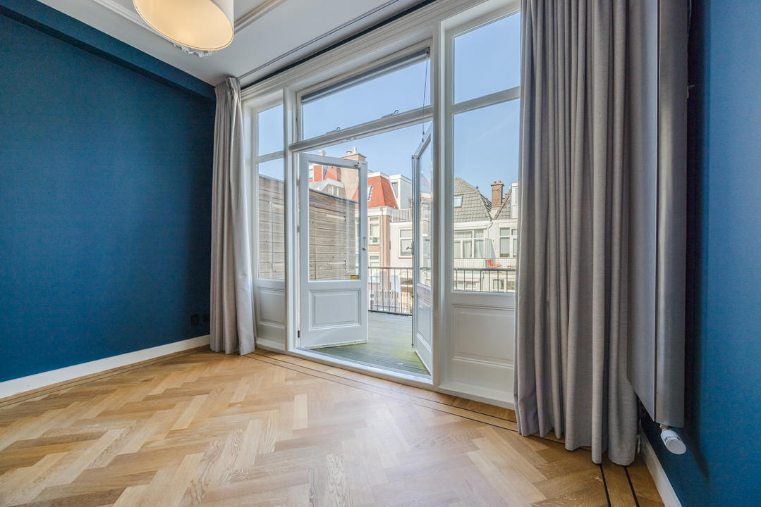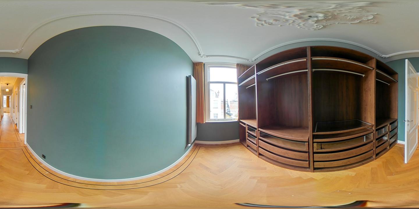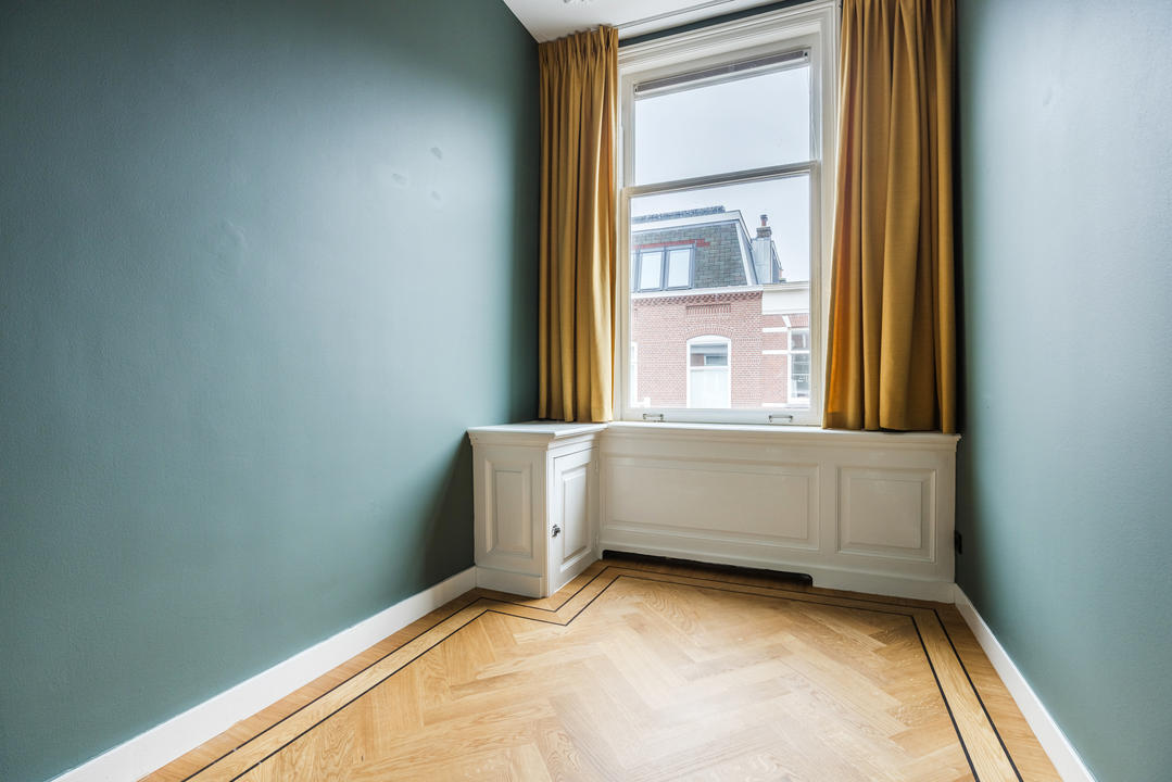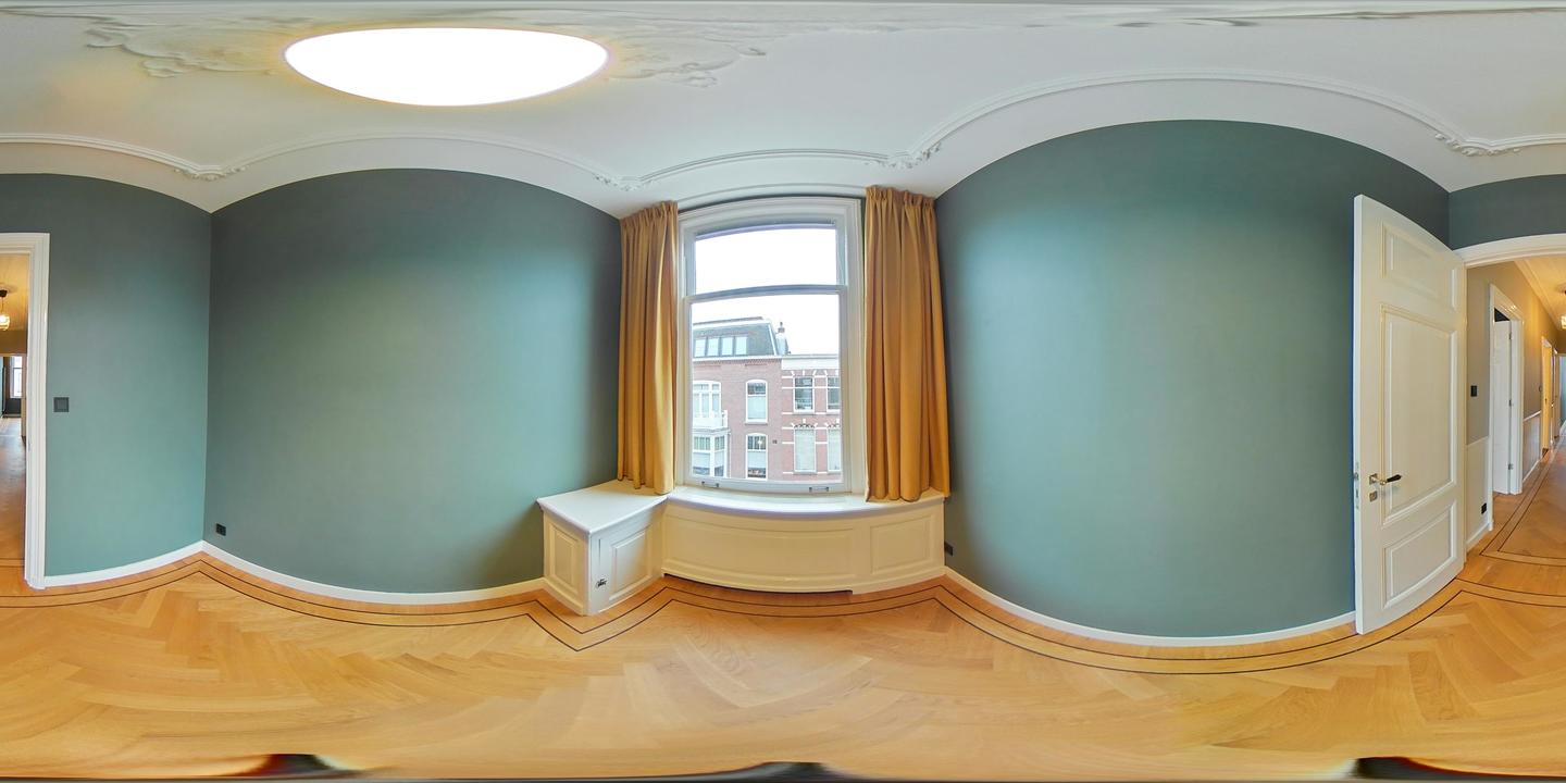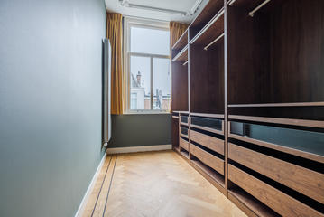 Via een prettig lopende brede trap met stijlvolle originele balusters wordt de tweede verdieping bereikt. Overloop met tweede modern toilet (vrijhangend) en een separate kast met wasmachine- en drogeraansluiting. Op deze verdieping bevinden zich vier slaapkamers. Aan de voorzijde liggen twee kamers, waarvan één is voorzien van een originele schouw en toegang tot extra bergruimte boven het verlaagde plafond van de badkamer. Tussen de voor- en achterkamers in ligt de moderne badkamer, compleet uitgevoerd met ligbad, inloopdouche met hand- en regendouche, glazen douchescherm, dubbele wastafel geďntegreerd in wastafelmeubel, designradiator en mechanische ventilatie. Aan de achterzijde bevinden zich nog twee ruime slaapkamers. De grootste slaapkamer beschikt over openslaande deuren naar het eveneens beschutte tweede balkon. Ook deze slaapkamer heeft extra bergruimte boven het verlaagde plafond van de badkamer. De naastgelegen achterzijkamer is momenteel ingericht als riante kledingkamer. Ook deze verdieping is voorzien van een visgraat parketvloer met bies en fraaie ornamentenplafonds.