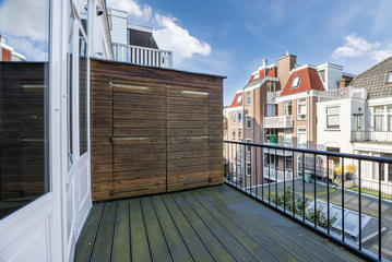 WOON EN GENIET in dit karakteristieke en royale drielaagse bovenwoning (ca. 176m2) in het geliefde Duinoord, met twee balkons én een zonnig dakterras. De indrukwekkende kamer en suite met glas-in-lood schuifdeuren vormt samen met de luxe keuken (2021) het sfeervolle hart van de woning, met openslaande deuren naar het eerste terras met ligging op de namiddag- en avondzon. De tweede verdieping biedt vier slaapkamers, een moderne badkamer en een tweede balkon, terwijl de veelzijdige topverdieping met grote glazen pui, tweede badkamer, kitchenette en het dakterras ideaal is als werk-, gasten- of zelfstandige leefruimte. De hoogwaardige afwerking met visgraat parketvloeren, paneeldeuren en maatwerkdetails geeft het geheel een stijlvolle en instapklare uitstraling. Gelegen op loopafstand van de Reinkenstraat en “De Fred”, met strand, centrum en openbaar vervoer binnen handbereik.