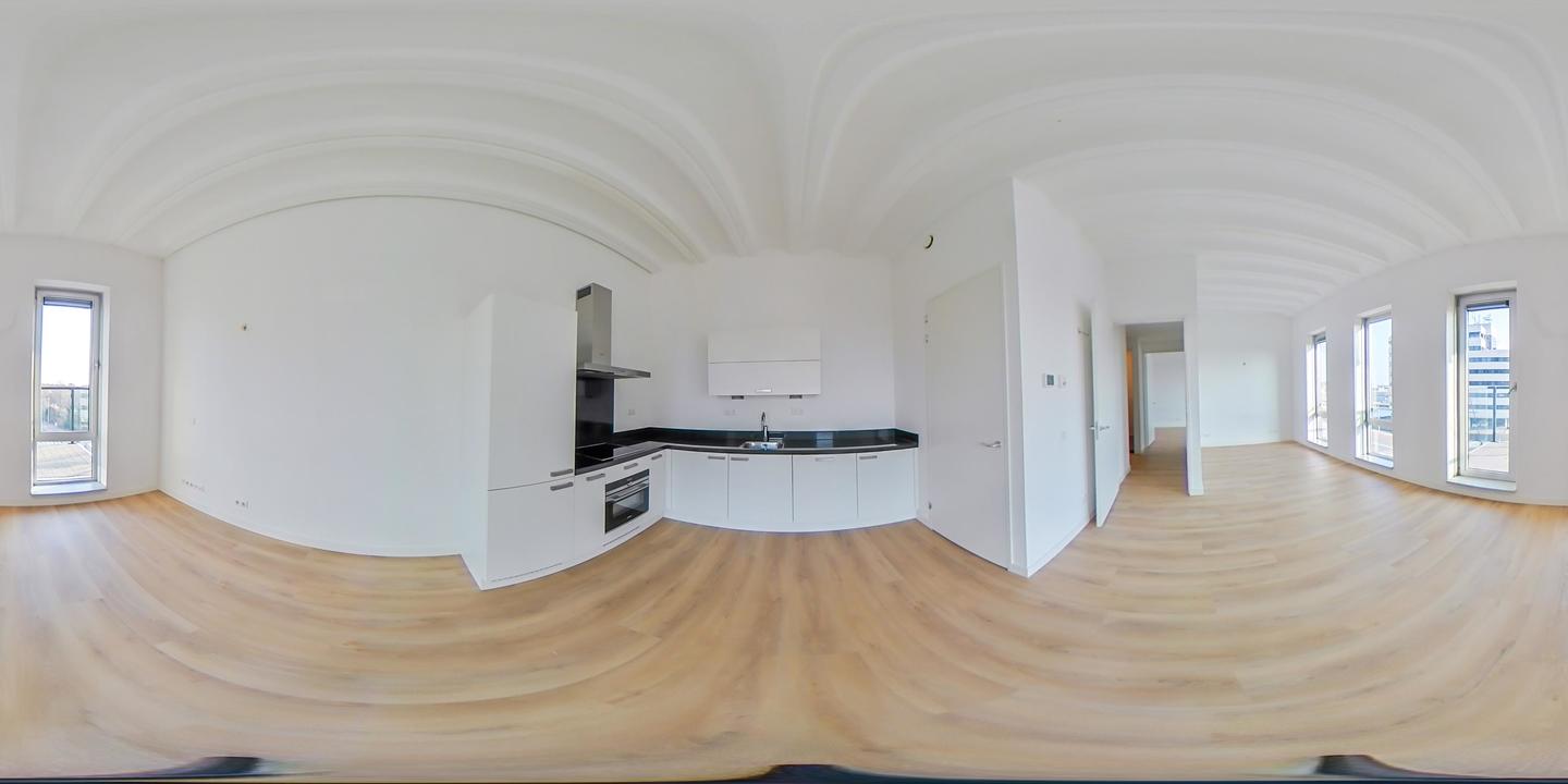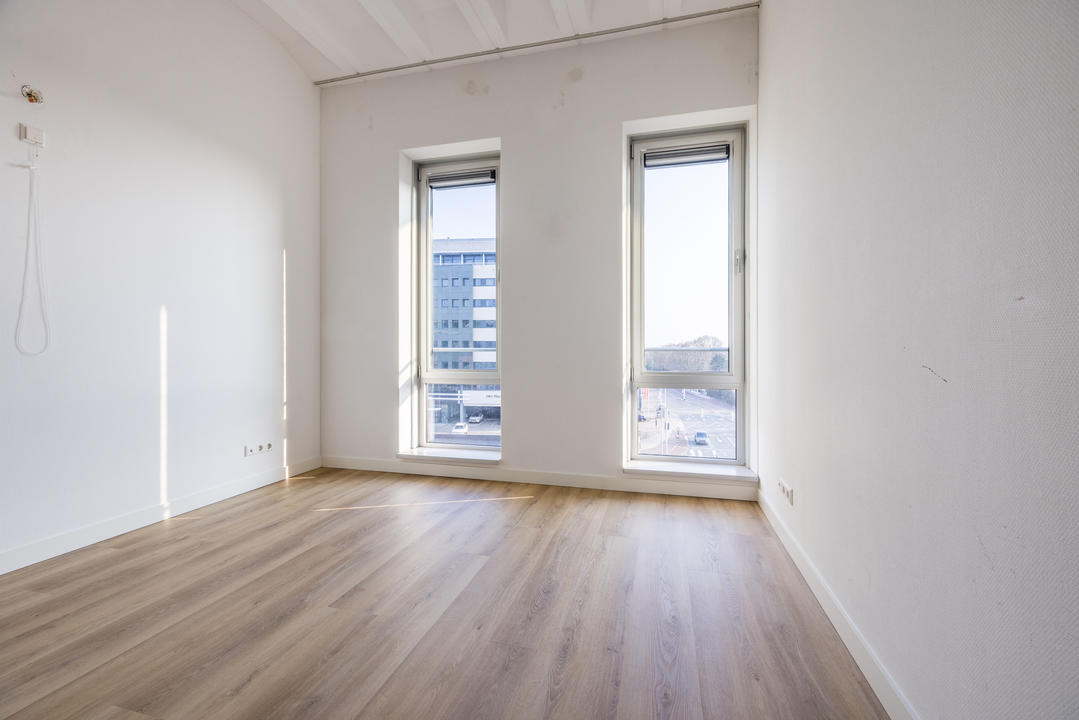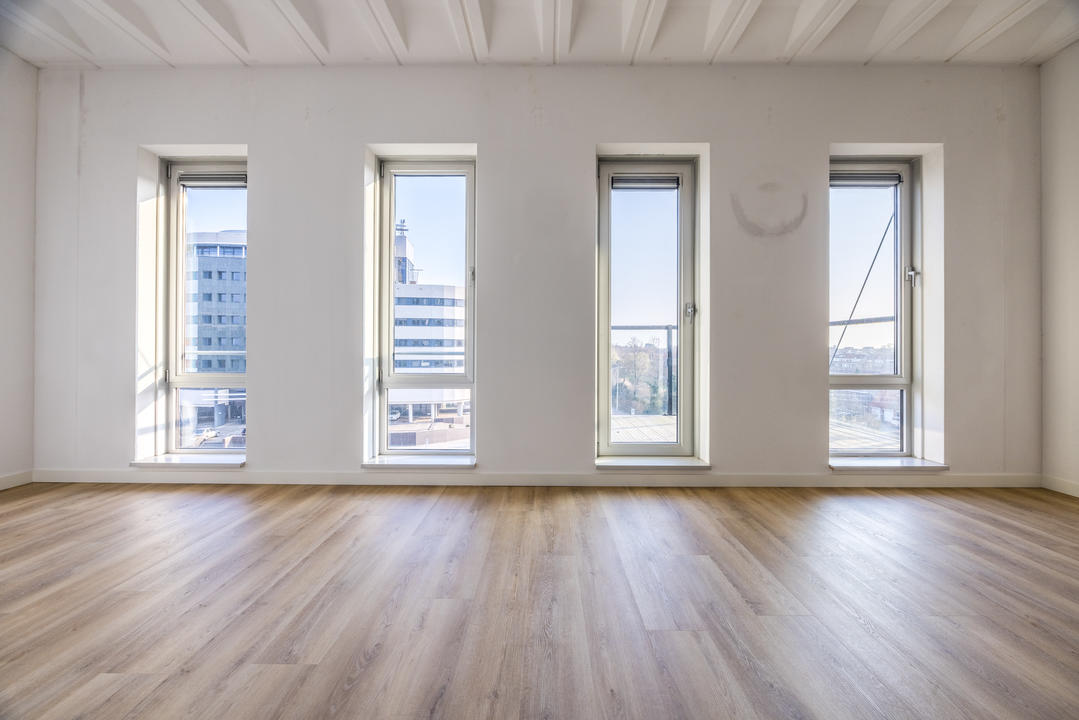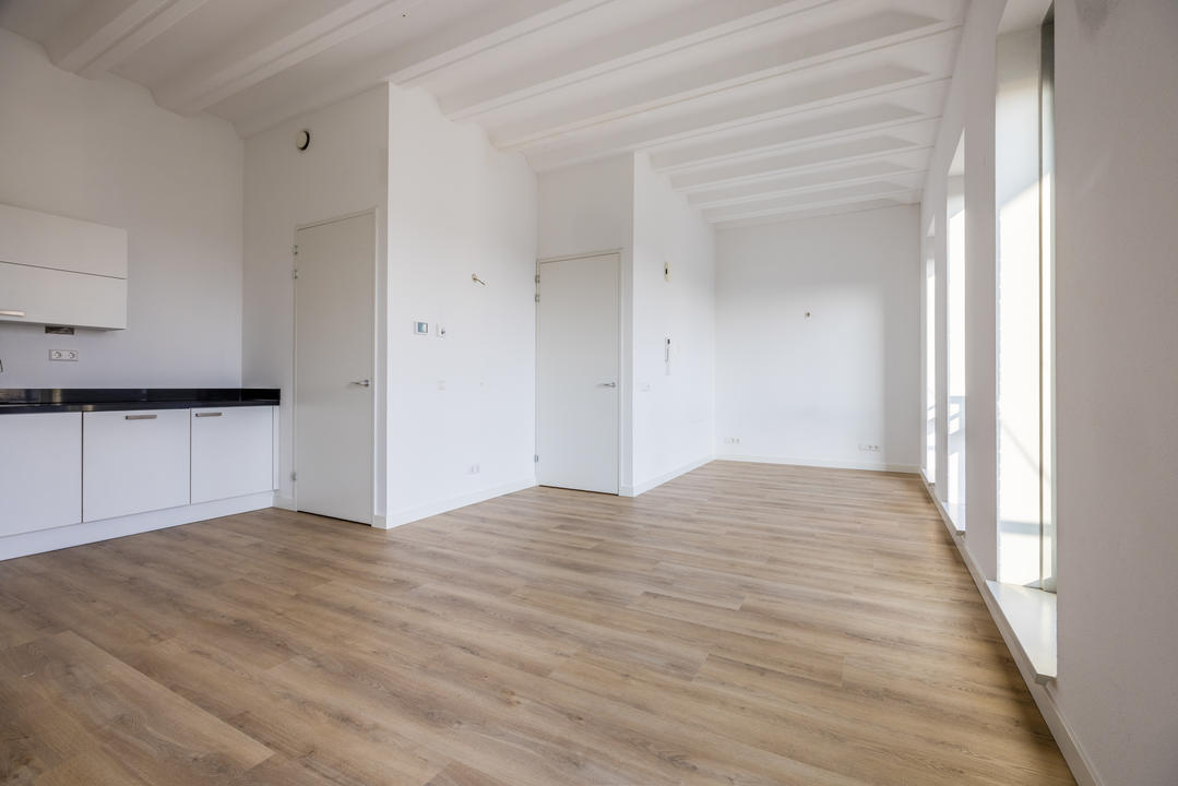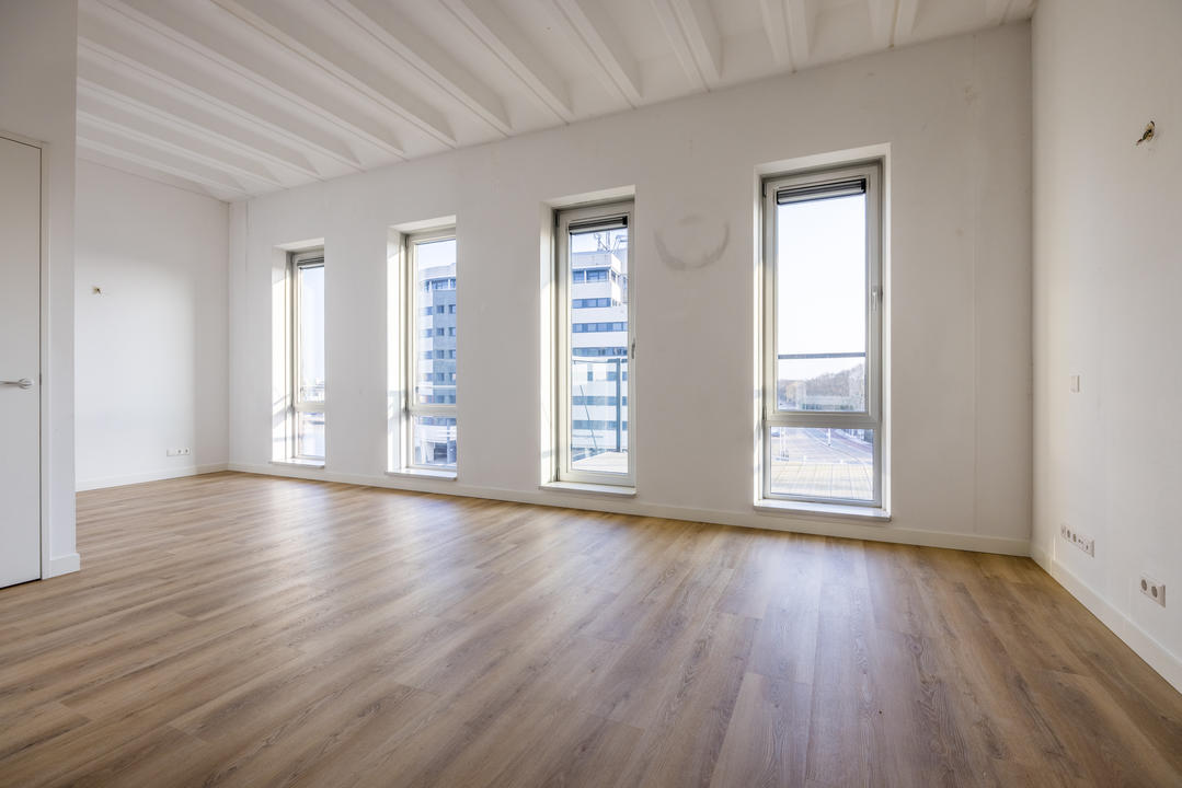 Dit appartement op de vierde verdieping is voorzien van een grote woonkamer met luxe open keuken, 1 slaapkamer (mogelijkheid tot het maken van een tweede slaapkamer), badkamer en terras.