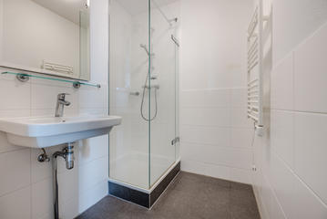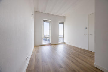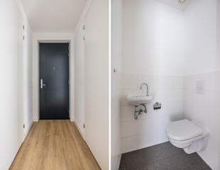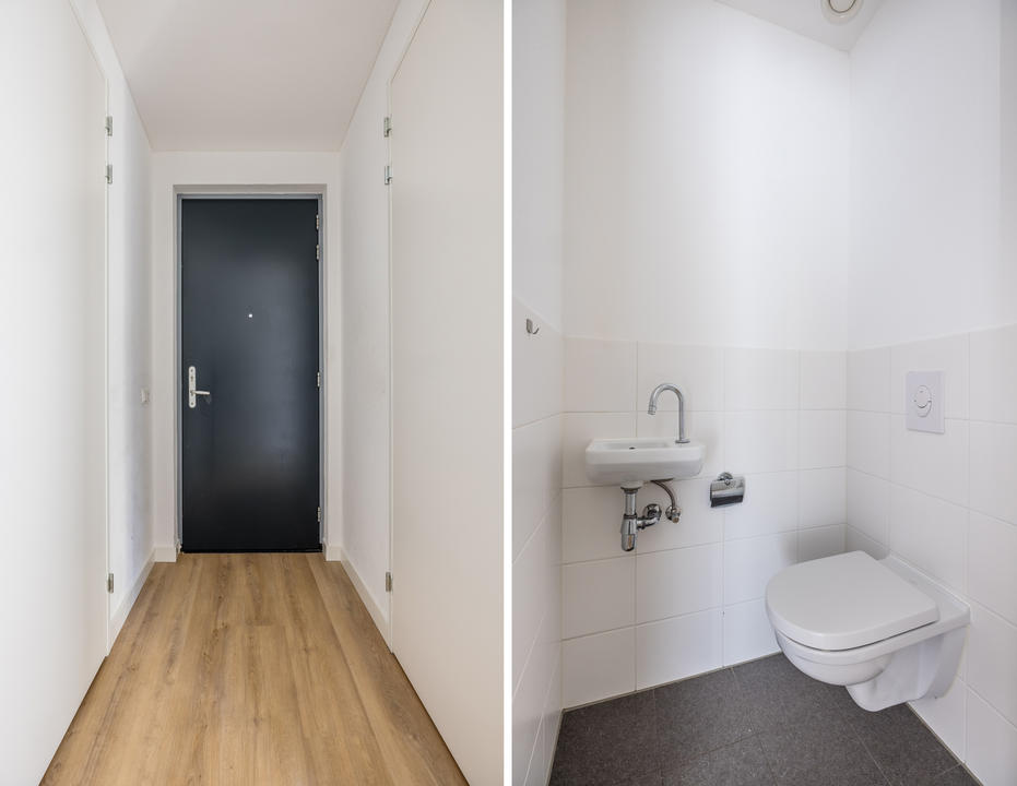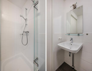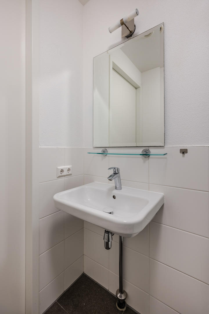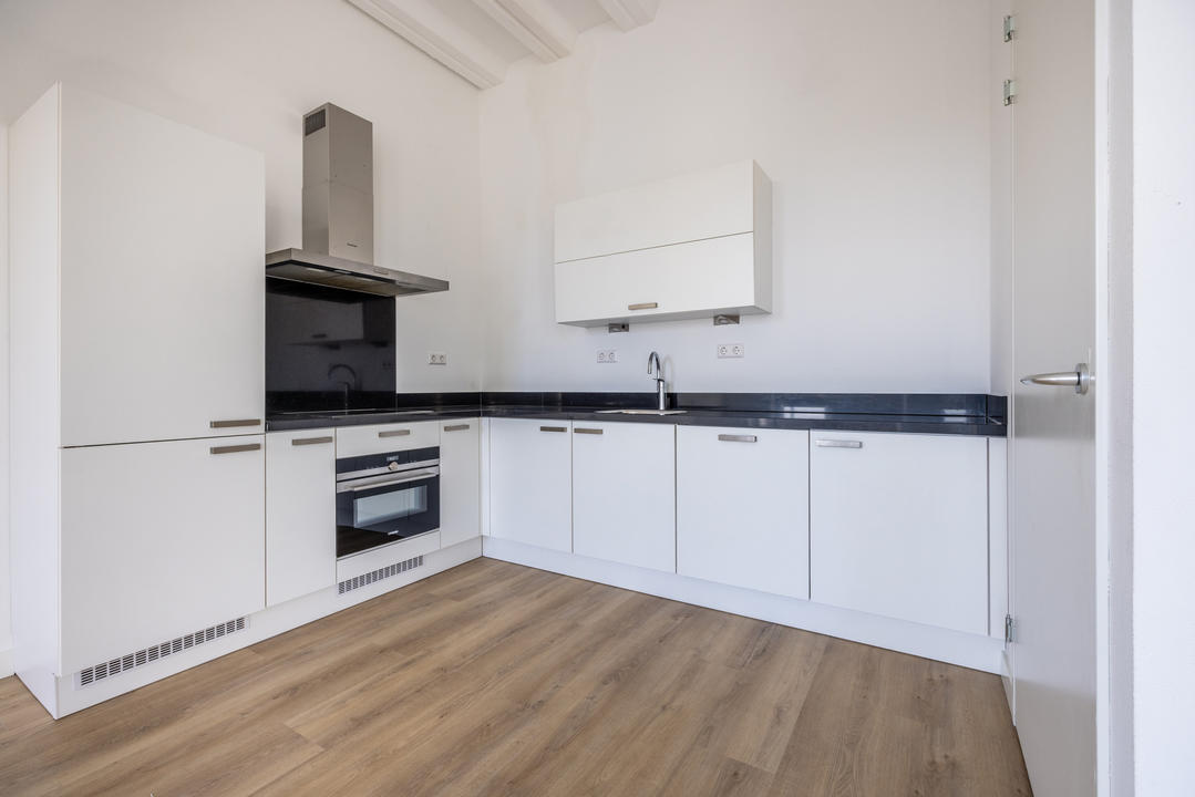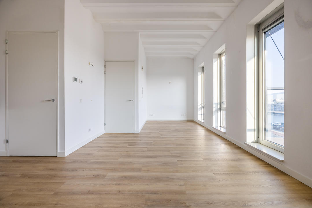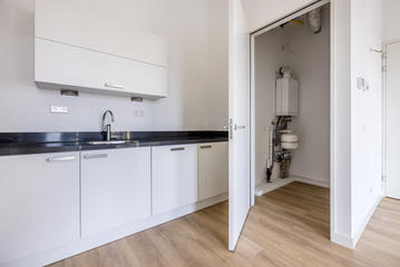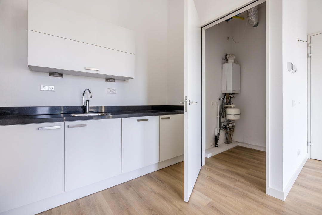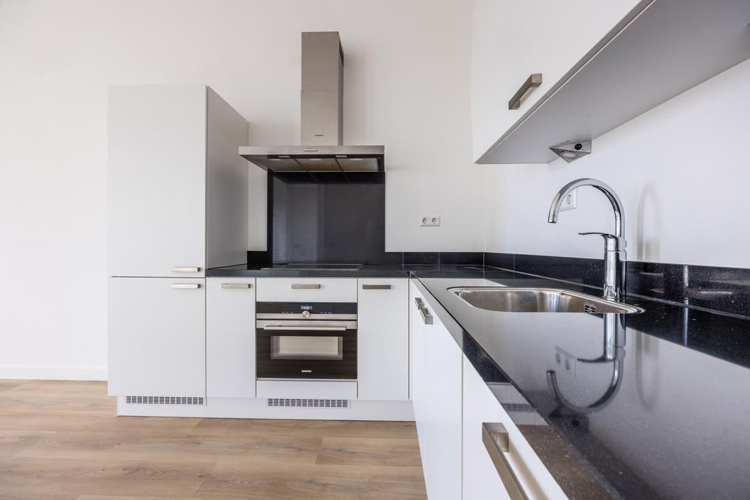 Centraal gelegen overloop; Separaat toilet met fontein; Moderne badkamer is voorzien van een lichte neutrale tegel. Verder is de badkamer voorzien van: inloop douche; vaste wastafel en een design radiator; royale slaapkamer met nis voor vaste kast. Ruim bemeten en daardoor lichte woon/eetkamer met ruimte voor het maken van de tweede slaapkamer; De woonkamer voorzien van de open moderne keuken met witte onder en bovenkasten. Alle apparatuur in de keuken is van Siemens te weten: koelkast, vriezer, vaatwasser, combi magnetron, inductie kookplaat, circulatie afzuigkap; Afgesloten stookruimte met opstelplaats van: cv ketel, mechanische ventilatie en wasmachine aansluiting. Vanuit de eerder genoemde woonkamer een openslaande deur naar geweldig terras met fraai levendig uitzicht.