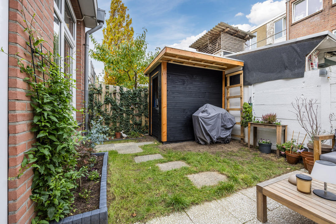 Aan de voorzijde ligt een slaapkamer met uitzicht over de eigen zonnige voortuin. Ook aan de voorzijde bevindt zich de woonkamer met toegang tot de ruime (uitgebouwde) slaapkamer aan de achterzijde met toegang tot de tuin. De keuken is tevens gelegen aan de achterzijde met eethoek en modern keukenblok met inbouwapparatuur: vaatwasser, 4-pits gasfornuis, rvs-afzuigkap en hete luchtoven. Vanuit de keuken is er toegang tot de achtertuin met een geďsoleerde, nieuwe houten berging.
