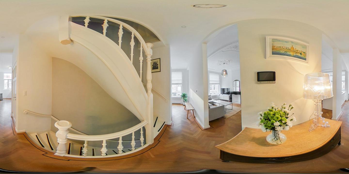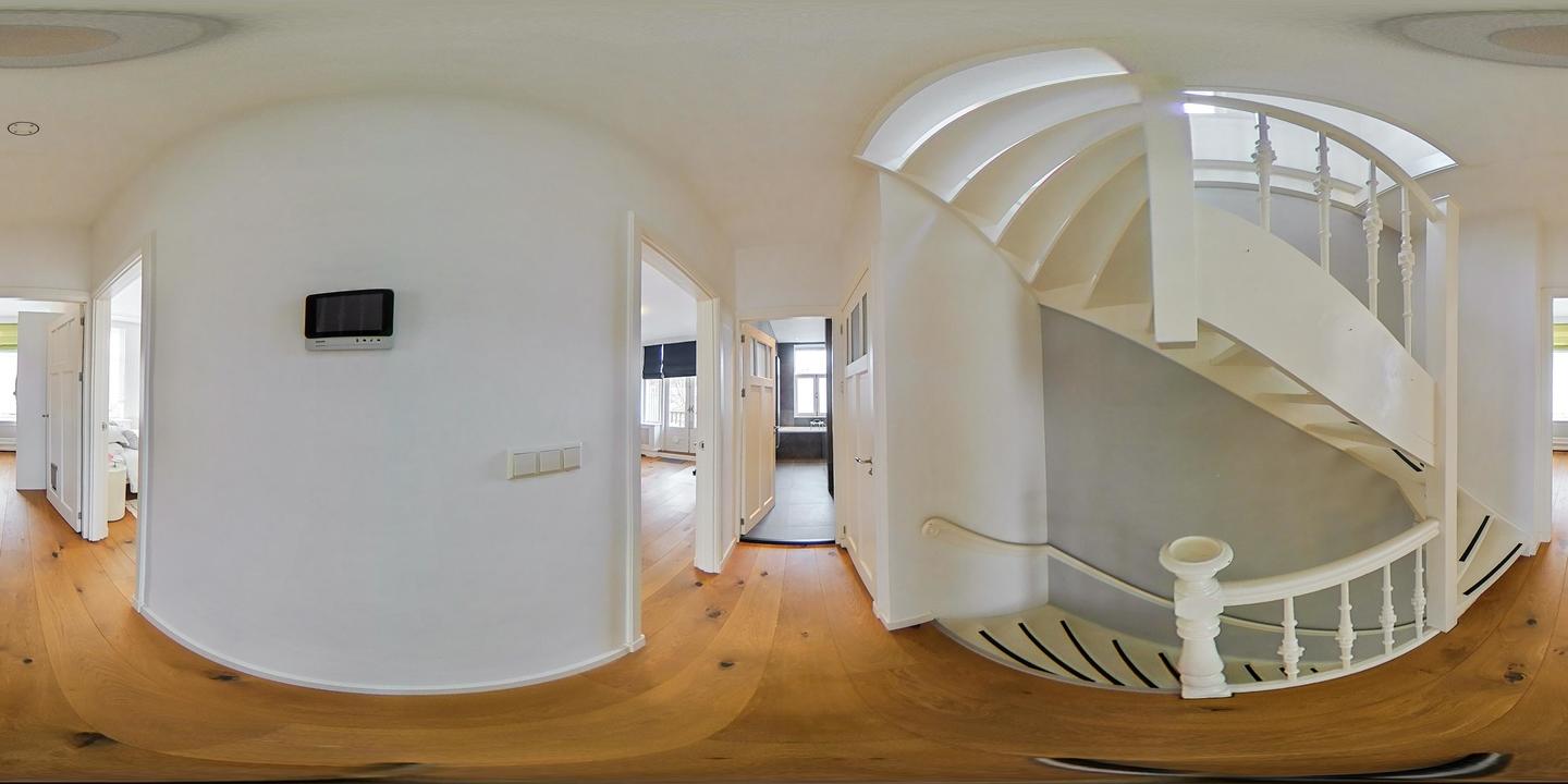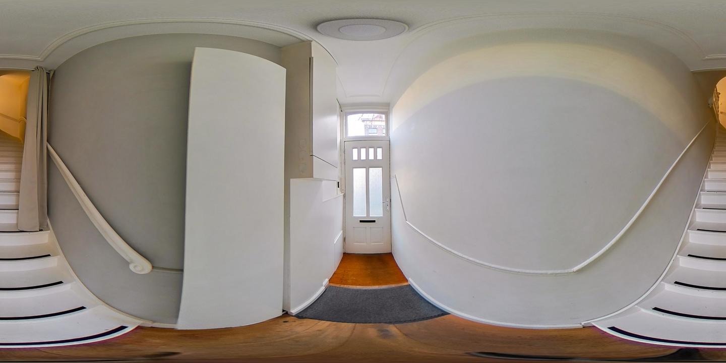 Entree op straatniveau. Hal met meterkast en trap naar de eerste woonlaag. Op deze verdieping wordt direct de indrukwekkende ruimtelijkheid ervaren, mede dankzij de loftachtige indeling en de hoge plafonds. De woning is in 2019 hoogwaardig en strak gerenoveerd.