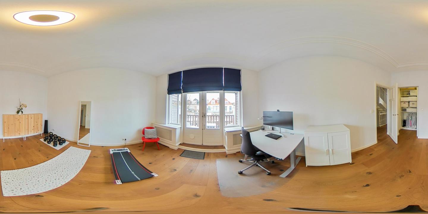 De tweede verdieping beschikt aan de voorzijde over een ruime slaapkamer met originele marmeren schouw. Aan de achterzijde is de royale slaapkamer gesitueerd, voorzien van een comfortabele en ruime inloopkast en openslaande deuren naar het balkon. Op deze verdieping bevinden zich tevens een separaat zwevend toilet en een luxe badkamer met vloerverwarming, uitgevoerd met een ligbad, een inloopdouche met regen- en handdouche en een dubbel wastafelmeubel van Solid Surface met verwarmde en verlichte spiegel. Daarnaast ligt aan de voorzijde nog een derde slaapkamer.