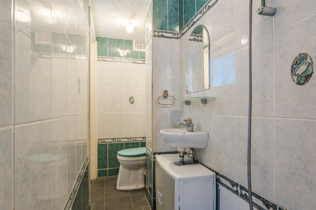 Open portiek met entree op de begane grond. Entree appartement via vestibule, gevolgd door een T-vormige hal met vaste kast waarin de meterkast is gesitueerd (3 groepen met aardlekschakelaar). De badkamer is eenvoudig uitgevoerd en voorzien van een toilet, douche en wastafel.