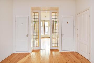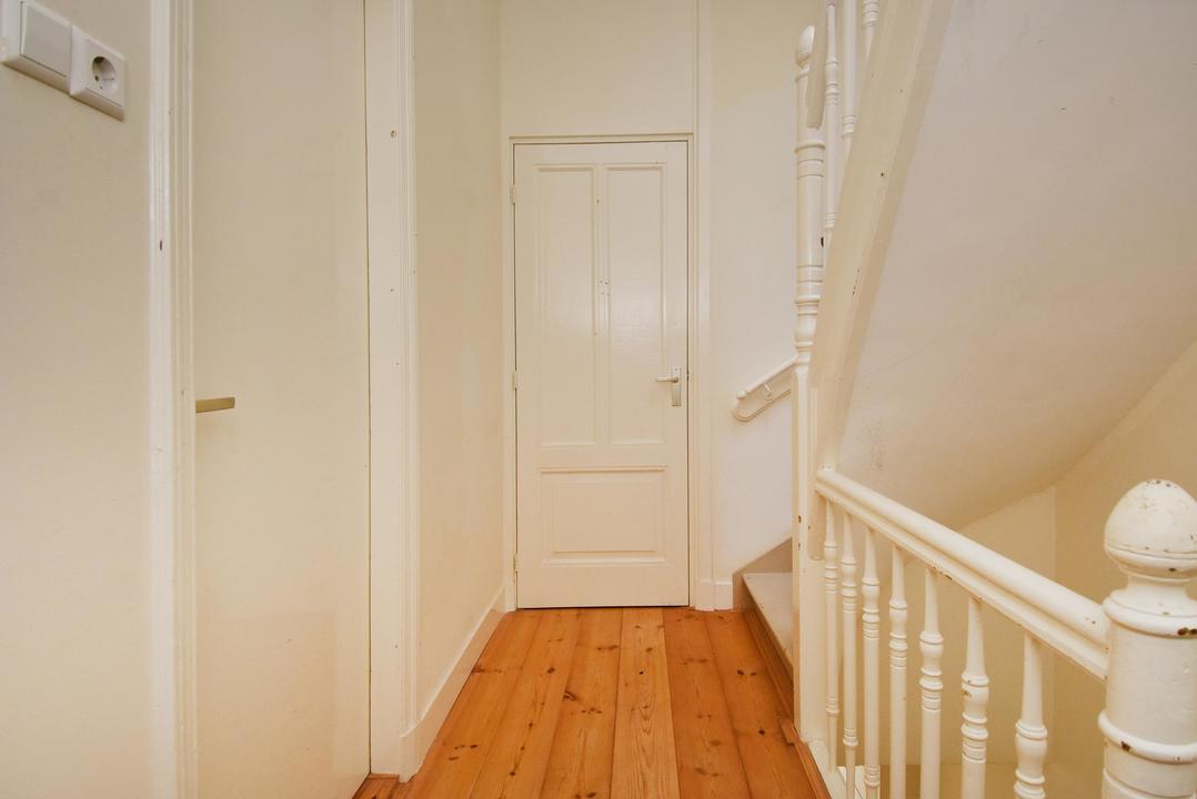 Via de gemeenschappelijke entree met groepenkast leidt de trap naar de eerste verdieping. De overloop geeft toegang tot het appartement.