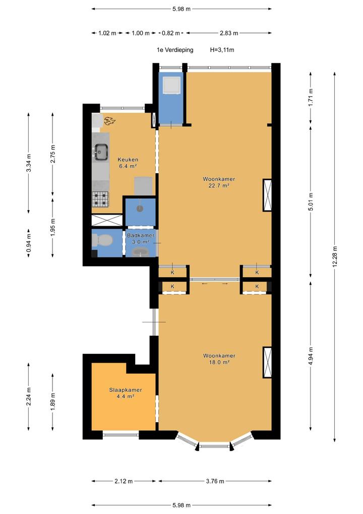 - Gebruiksoppervlakte circa 61m2, gemeten conform NVM meetinstructie