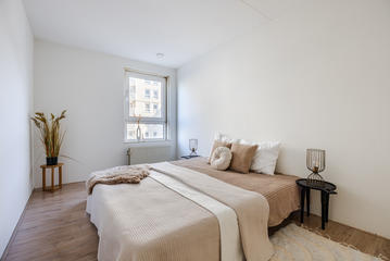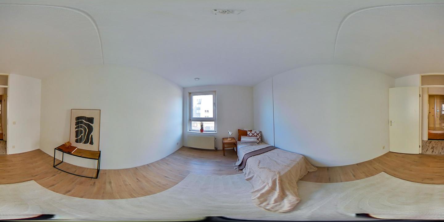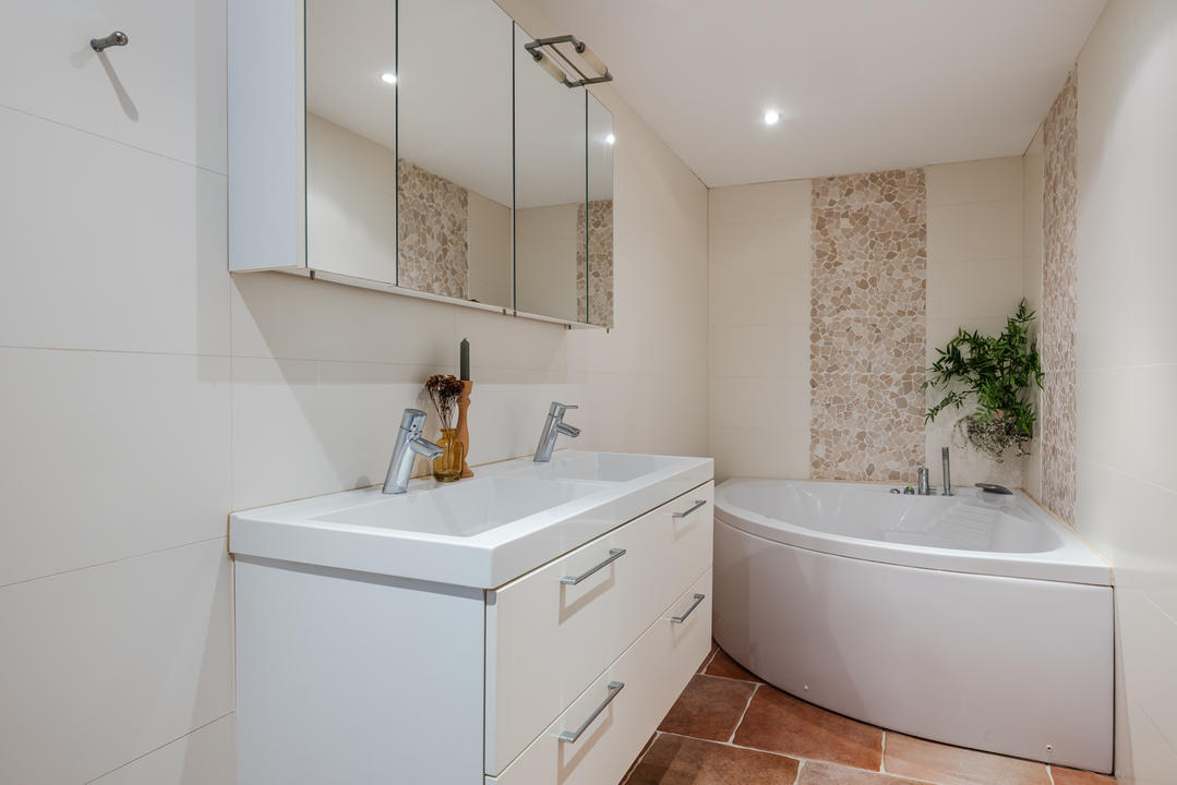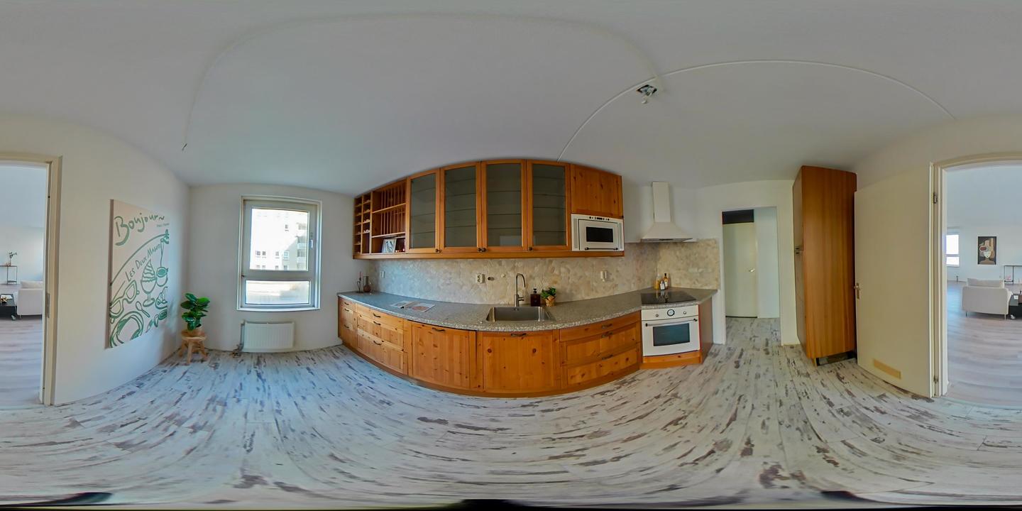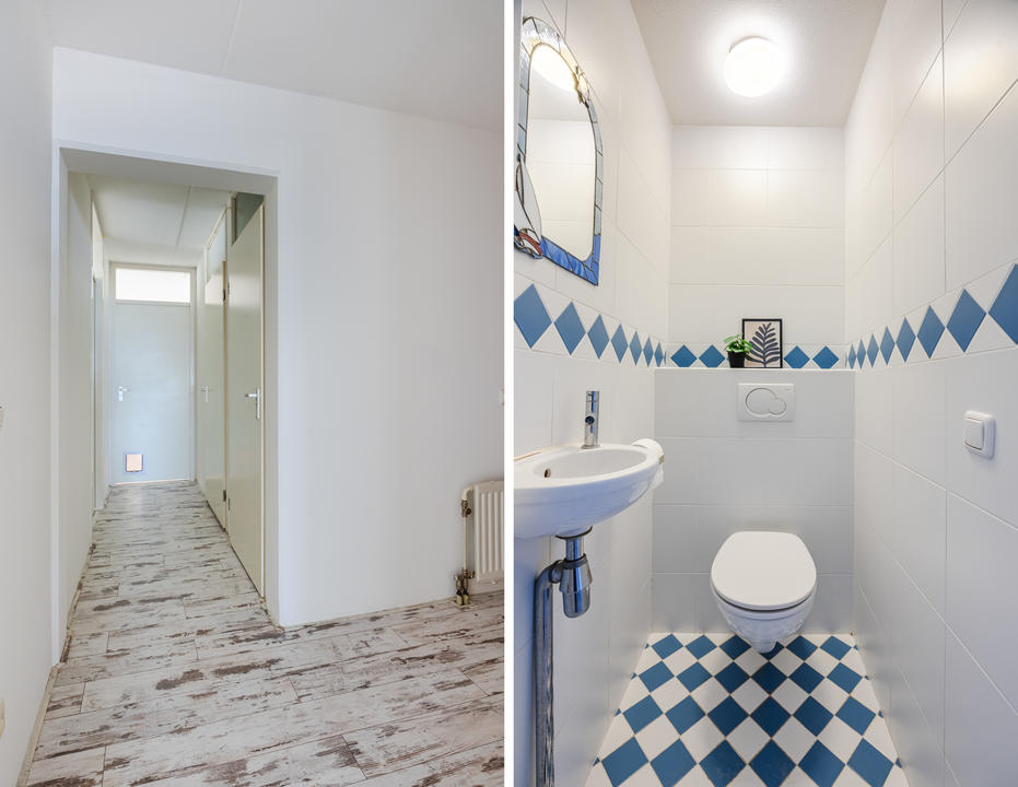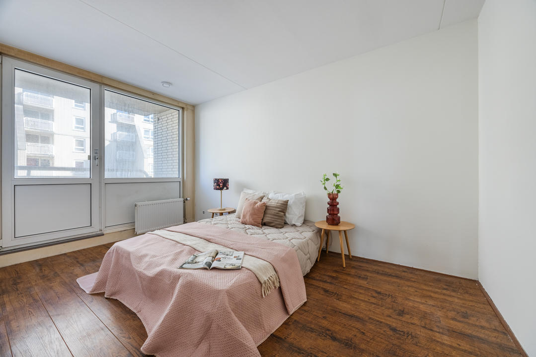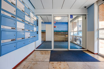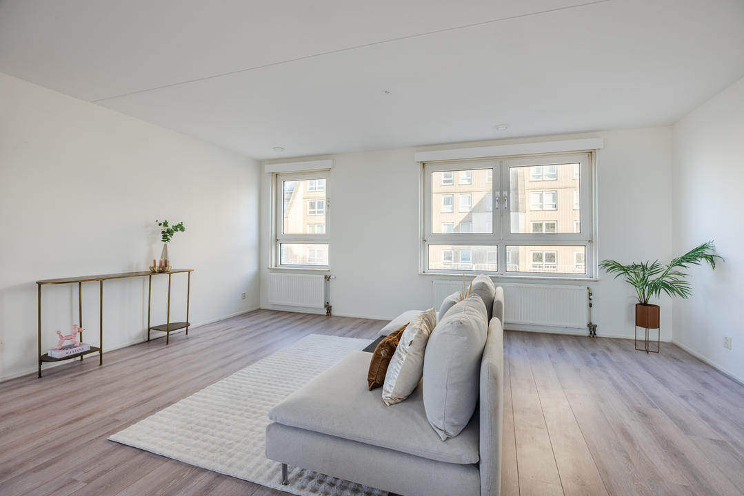 Via de afgesloten, centrale entree met video-intercom bereik je de tweede verdieping per lift of trap. Vanuit de corridor kom je bij de entree van het appartement, waar een ruime T-vormige hal toegang biedt tot alle vertrekken. De royale woonkamer met grote raampartijen laat je eindeloos genieten van het panoramische uitzicht. De aangrenzende keuken is bereikbaar vanuit zowel de hal als de woonkamer en voorzien van een net keukenblok met houten fronten en diverse inbouwapparatuur, waaronder een oven, 4-pits inductiekookplaat, afzuigkap, magnetron en vaatwasser. In de hal bevinden zich een praktische berging met wasmachineaansluiting en een aparte kast met opstelplaats voor de CV-ketel (2008), boiler en mechanische ventilatie. Het appartement beschikt over drie slaapkamers. De ruime hoofdslaapkamer is rustig gelegen. Slaapkamer twee is ideaal als logeerkamer of werkkamer. De derde slaapkamer biedt toegang tot het balkon met ochtendzon – de perfecte plek voor een kop koffie in de ochtend. De badkamer is uitgerust met een hoekbad/jacuzzi, dubbele wastafel in meubel, royale inloopdouche met regendouche en extra jets, vloerverwarming en mechanische ventilatie. Het separate toilet is voorzien van een modern vrijhangend closet en fonteintje.