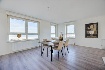 Gelegen in Scheveningen-Bad, een van de meest geliefde en levendige kustlocaties van Nederland. Dit appartement ligt werkelijk letterlijk op steenworp afstand van de boulevard en het strand – je loopt zo naar zee voor een frisse duik, een wandeling of een ontspannen middag bij een van de vele strandtenten. De Palace Promenade, met winkels, horeca en een supermarkt, bevindt zich direct onder het gebouw, net als het iconische Kurhaus en het Circustheater. Ook zijn er bioscopen, casino’s en talloze eetgelegenheden binnen handbereik. Met openbaar vervoer (tram en bus) voor de deur ben je binnen korte tijd in het centrum van Den Haag en op andere centrale locaties. Kortom: een unieke combinatie van ontspanning aan zee en stedelijk gemak – alles binnen handbereik.