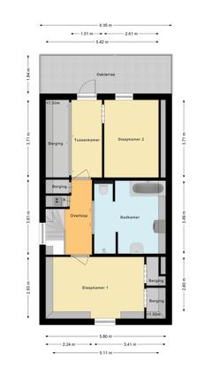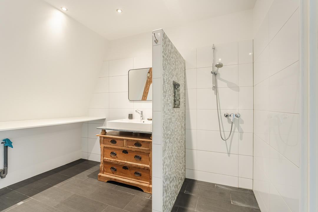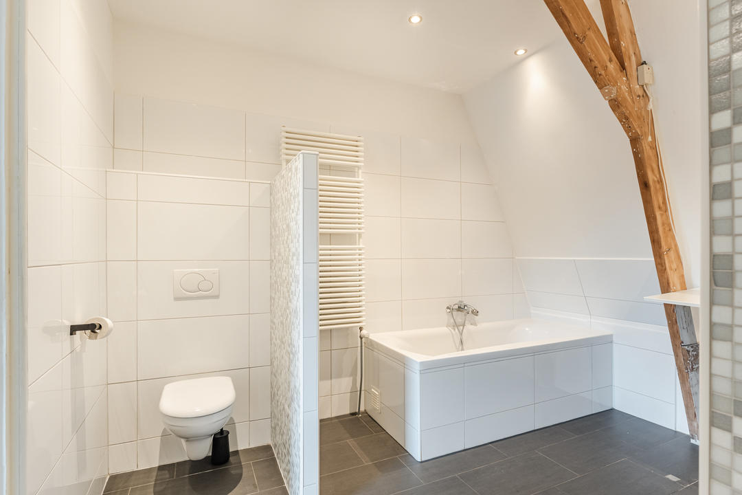Overloop met 2 vaste kasten, waarvan 1 met opstelplaats c.v.-combiketel. De hoofdslaapkamer aan de voorzijde is gelegen over de volle breedte van de woning en beschikt over vaste kasten en veel licht. De moderne badkamer is gelegen tussen de slaapkamer aan de voorzijde en die aan de achterzijde en heeft een ligbad, inloopdouche, wastafel in meubel, tweede toilet en wasmachine aansluiting. Aan de achterzijde bevindt zich een tweede ruime slaapkamer, terwijl de derde slaapkamer is voorzien van een praktische kastenwand – ideaal als kinderkamer, werkkamer of logeerkamer- en toegang tot het ruime balkon met ook volop zon!
