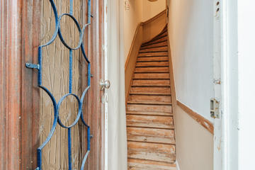 Entree op straatniveau. Hal met meterkast en trap naar de 1e verdieping.