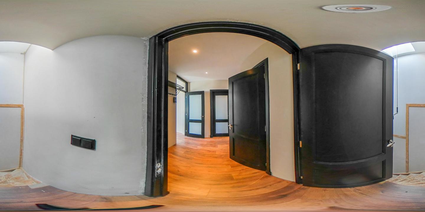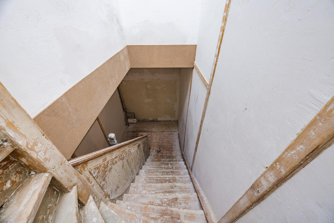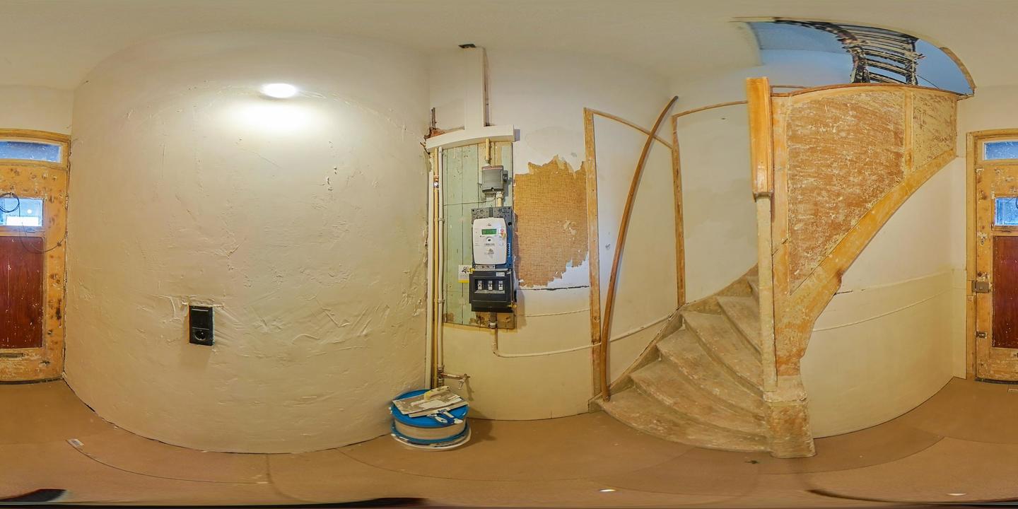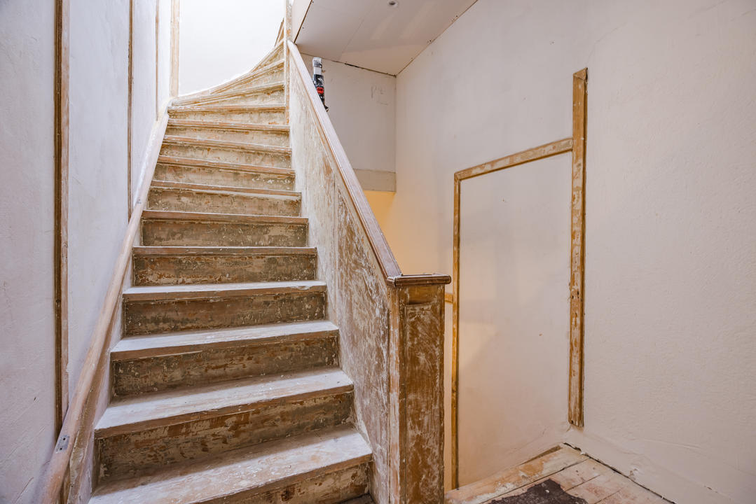 Open portiek met trap naar de eerste verdieping. Entree van het appartement met hal en trap naar de derde verdieping. Overloop met modern toilet voorzien van een vrijhangend closet.