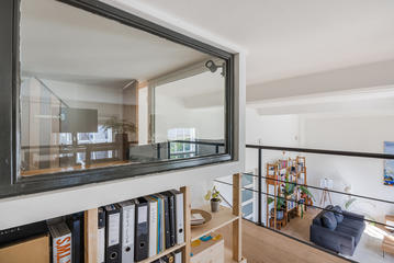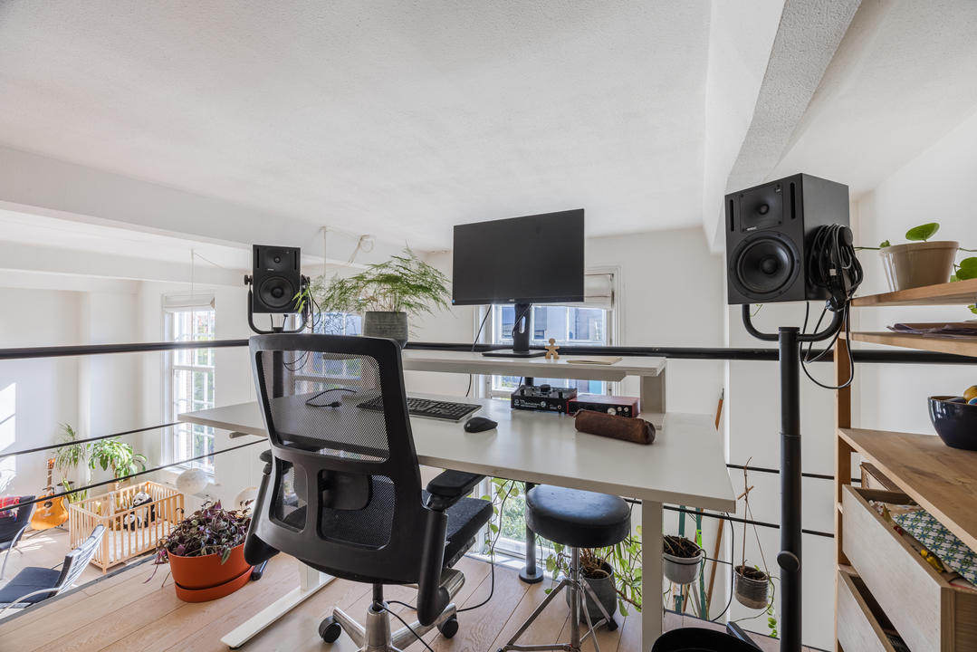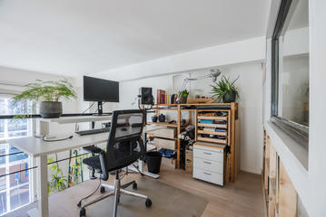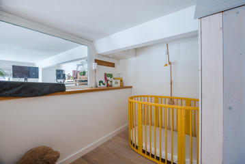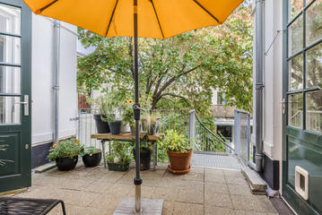 Boven de keuken bevindt zich een entresol van circa 15m˛, een veelzijdige ruimte welke verdeeld is in een 2e (slaap)kamer en werkruimte. De 1e slaapkamer ligt rustig aan de zijde van het hofje en heeft toegang tot het balkon. De moderne badkamer is voorzien van een ligbad, separate douche, wastafel en aansluitingen voor wasmachine en droger. Daarnaast is er een separaat toilet met fontein aanwezig.