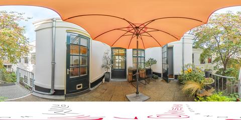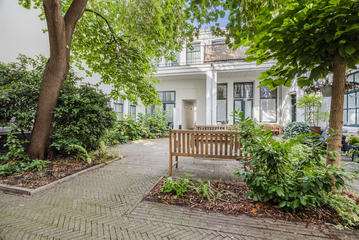 De prachtige, statige ontvangsthal in het middenpaviljoen aan de Hooftskade is voorzien van een dubbele bordestrap, originele tegelvloer en lambriseringen van geglazuurde baksteen uit de bouwtijd. De karakteristieke glas-in-loodramen zorgen voor sfeervol licht vanaf de achterzijde en dateren van de verbouwing uit 1925-1926. Via het binnenterrein en een charmant hofje leidt een wenteltrap naar de entree van de woning en het balkon.