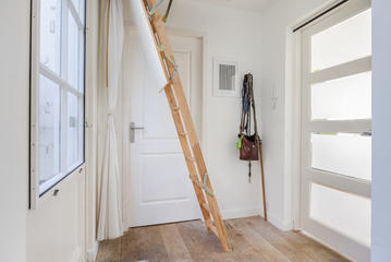 In de hal bevindt zich een vlizotrap naar de ruime bergvliering van circa 16 m˛ met een hoogte van ongeveer 1,40 meter.