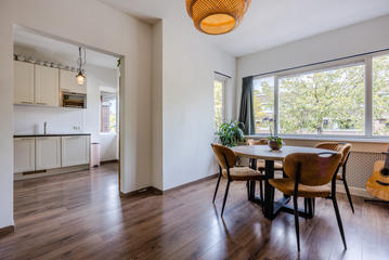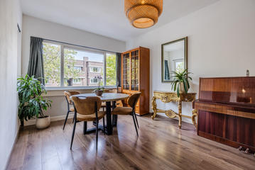 WOON EN GENIET van dit appartement gelegen op de eerste verdieping. De woning is voorzien van een kamer en suite met glas-in-loodschuifdeuren en erker, een ruime open keuken met inbouwapparatuur, twee/drie slaapkamers, een nette badkamer en een zonnig balkon op het zuidwesten.