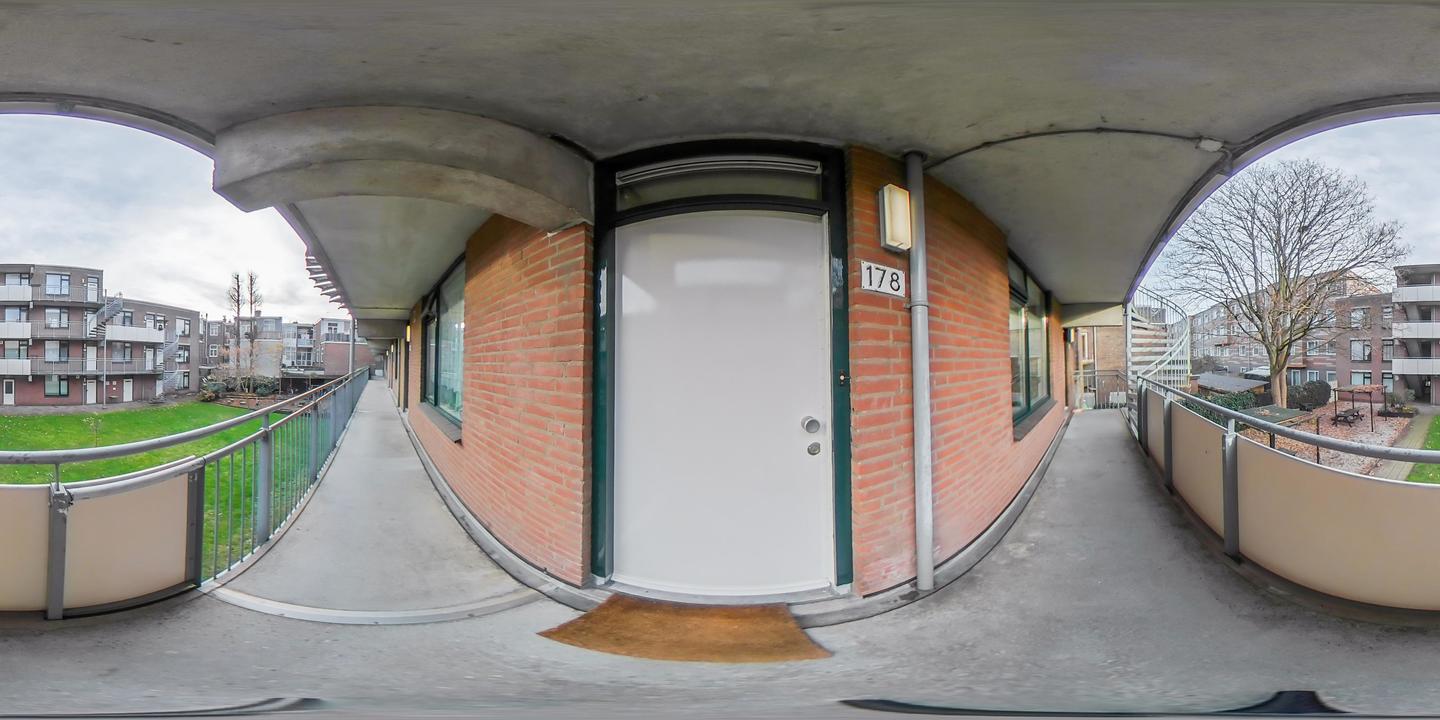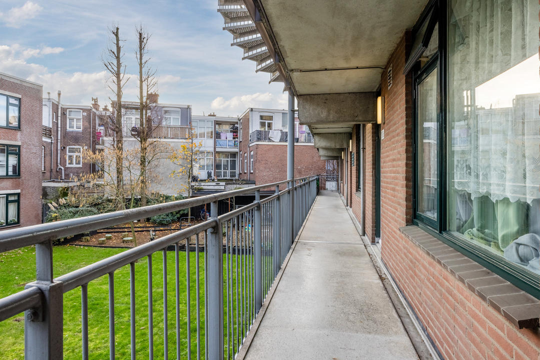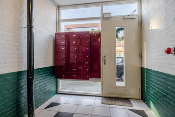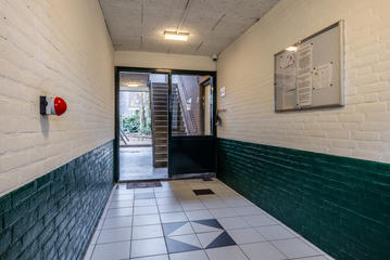 Gesloten portiek met toegang tot de berging, de gemeenschappelijke binnentuin en het trappenhuis naar de eerste verdieping. Via de galerij wordt het appartement bereikt; het ligt rustig en betreft het één na laatste appartement op de galerij, wat zorgt voor extra privacy.