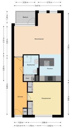 - Gebruiksoppervlakte circa 61, buitenruimte/balkon ca. 5m˛, gemeten conform meetinstructie gebaseerd op NEN2580