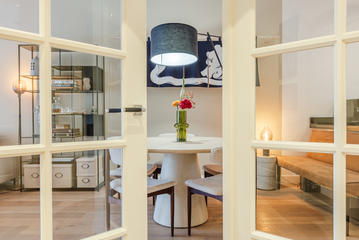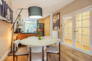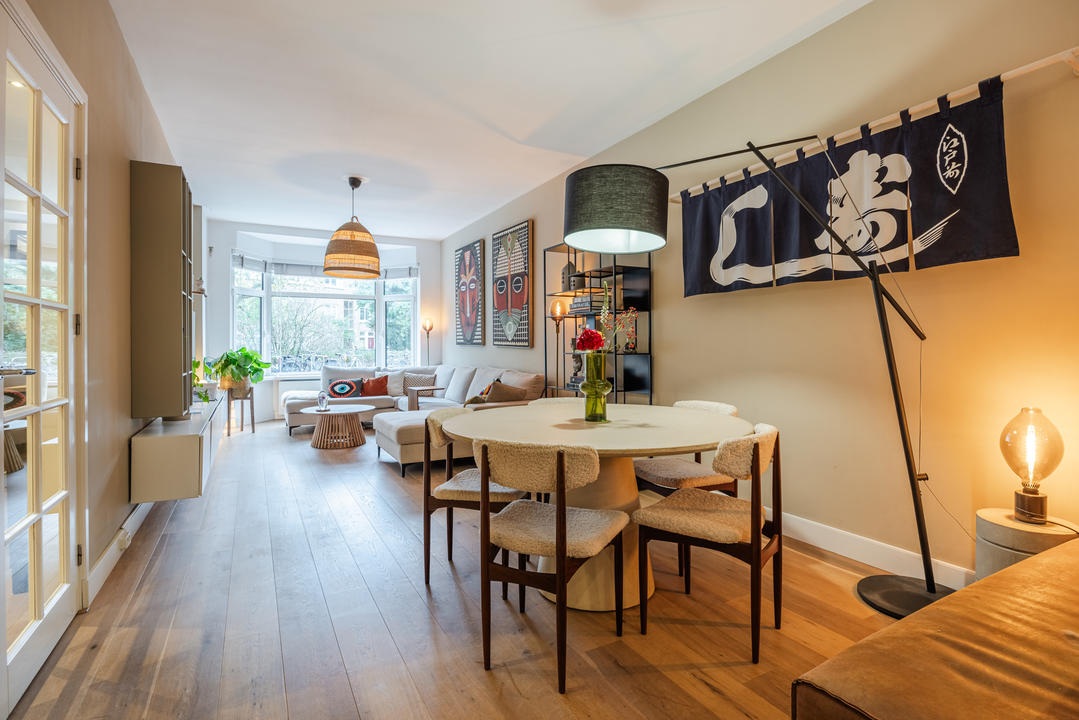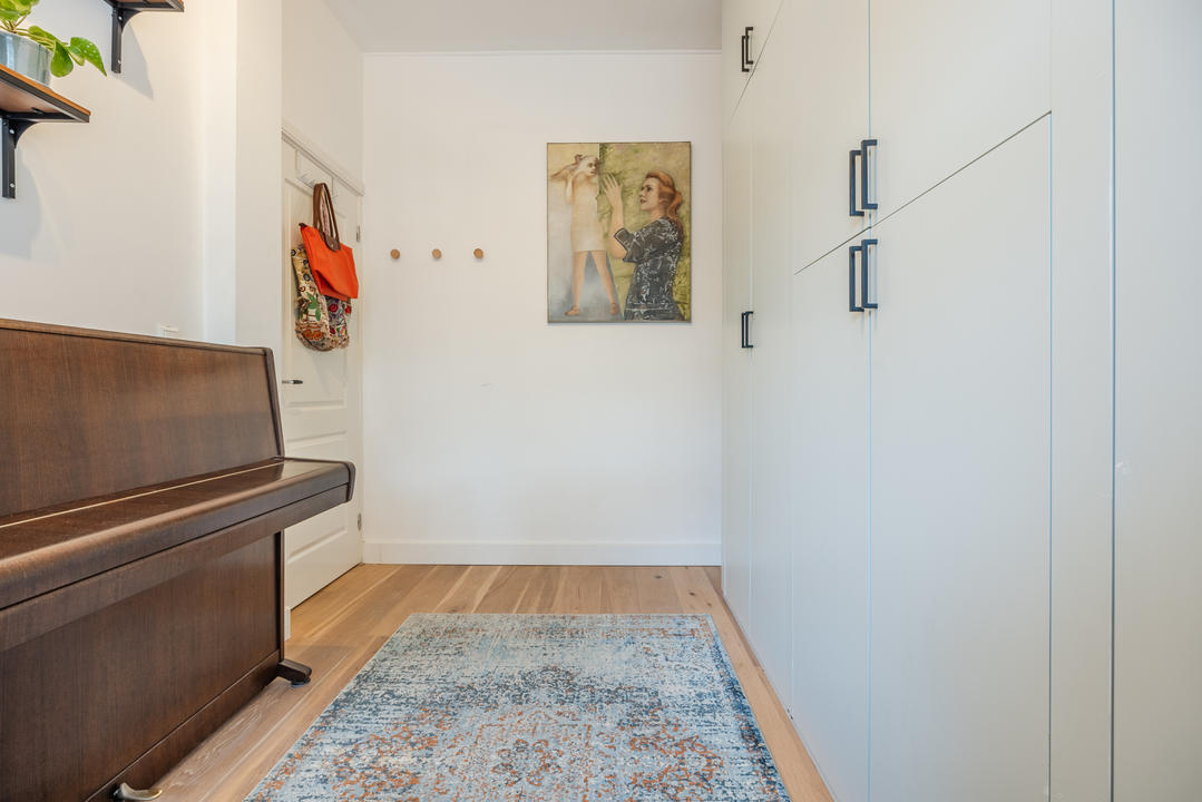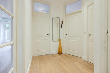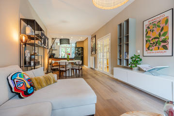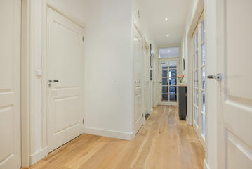 Het appartement is in 2017 volledig gerenoveerd, met gebruik van hoogwaardige materialen en een consequente afwerking in moderne stijl. De gehele woning is voorzien van een eikenhouten parketvloer die in 2021 is geschuurd en geolied, wat zorgt voor een warme en stijlvolle uitstraling.