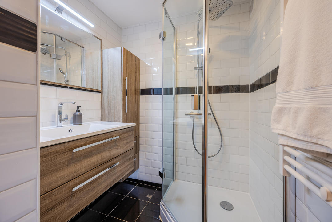 - Op de zolderverdieping, te bereiken via het portiek, is er een extra kamer met een douche, dakkapel, elektrische verwarming en een gedeeld toilet