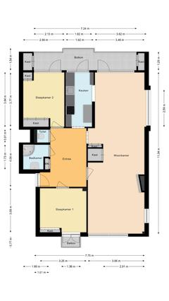 - Gebruiksoppervlakte totaal: ca. 111m2: het appartement is ca. 92m2 en de zolderkamer is ca. 21m2, gemeten conform NVM meetinstructie
