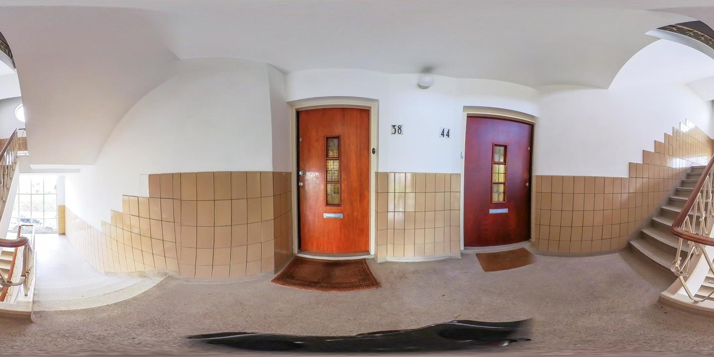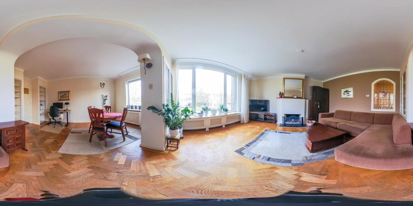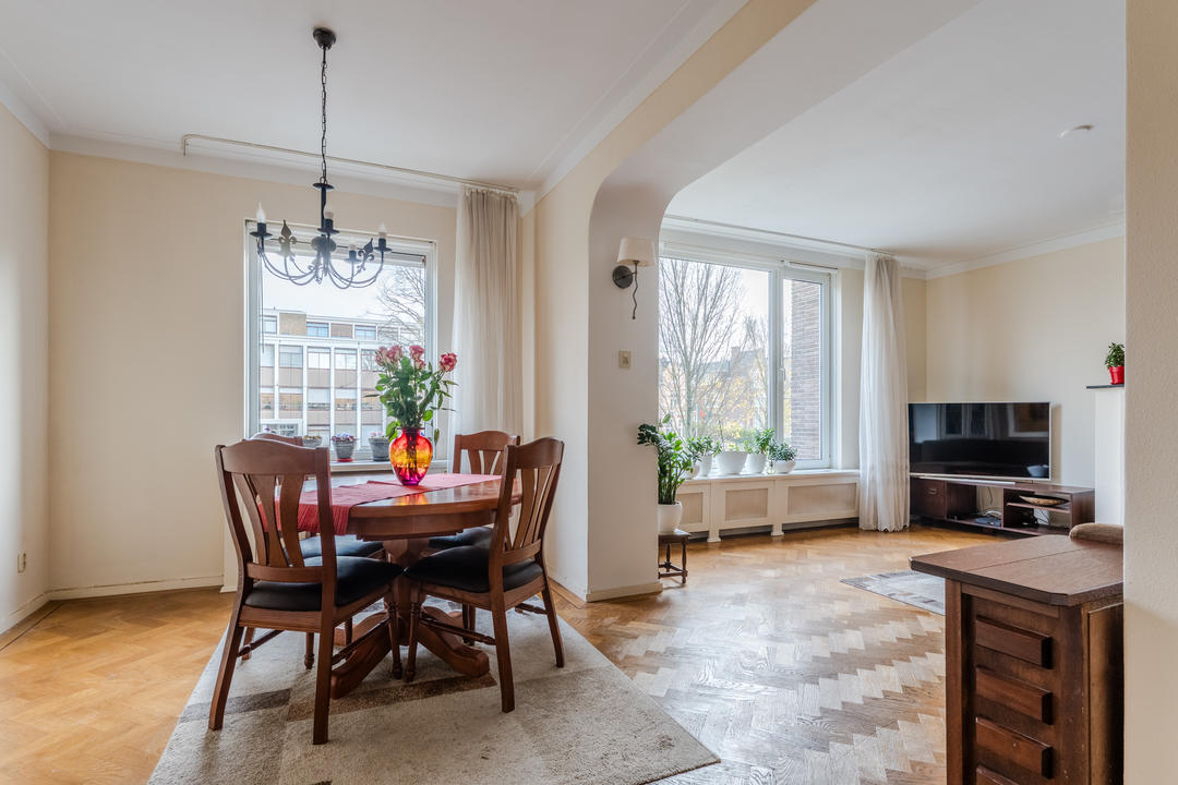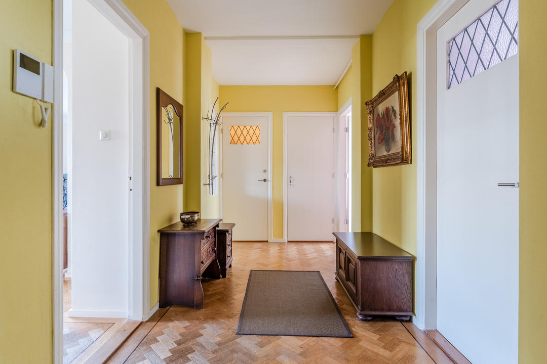 Gesloten entree met trappenhuis naar de tweede woonlaag. Entree van het appartement. Hal met meterkast. Vanuit de hal is de ruime woonkamer bereikbaar, gelegen aan de voorzijde van de woning. Deze woonkamer bestond voorheen uit twee kamers en biedt hierdoor een prettige, royale leefruimte met veel lichtinval.