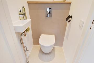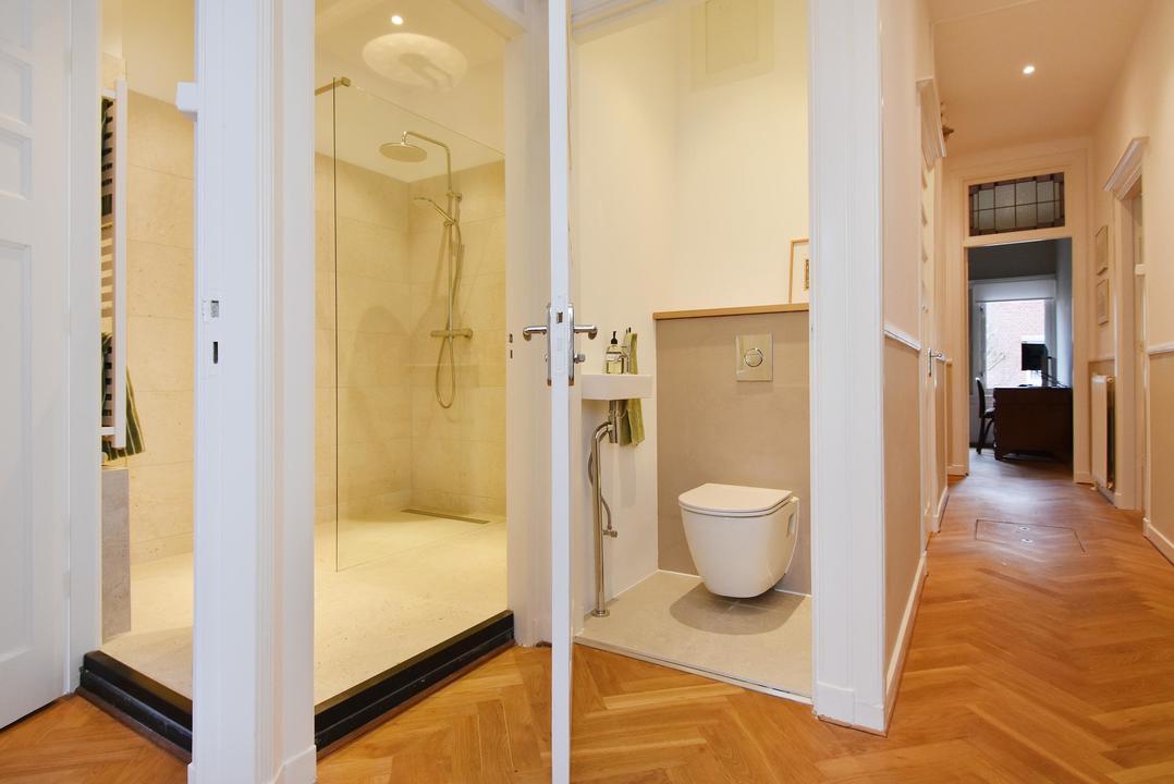 Het appartement beschikt over een modern toilet met vrijhangend closet en fontein. De badkamer is in 2025 volledig vernieuwd en modern afgewerkt, voorzien van een inloopdouche met regendouche en handdouche, een glazen douchescherm, een wastafelmeubel, designradiator en mechanische ventilatie. Slaapkamer 2 is gelegen aan de achterzijde en heeft toegang tot het balkon. Slaapkamer 3 is tevens aan de achterzijde en biedt directe toegang tot het balkon.