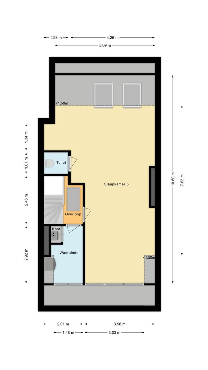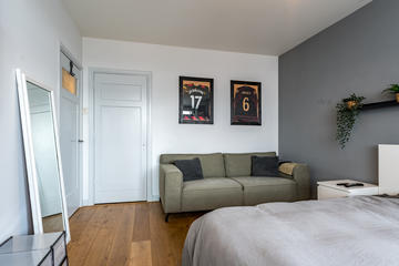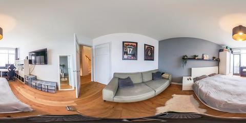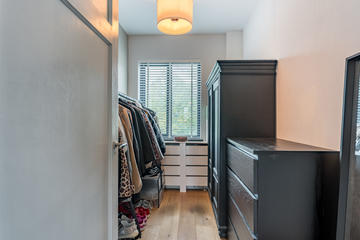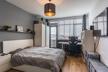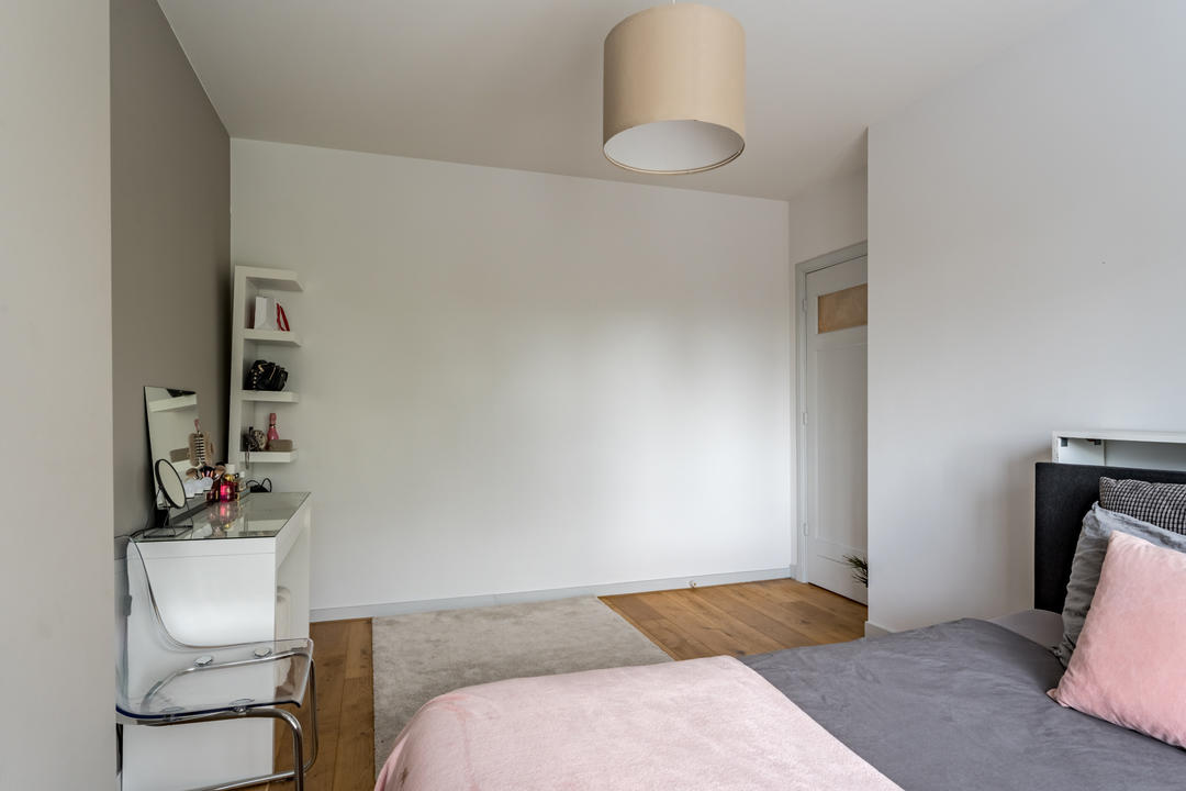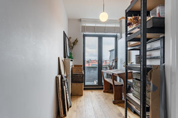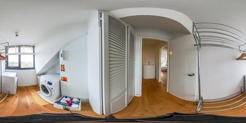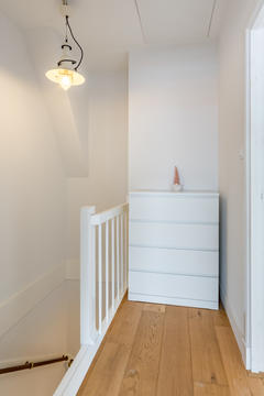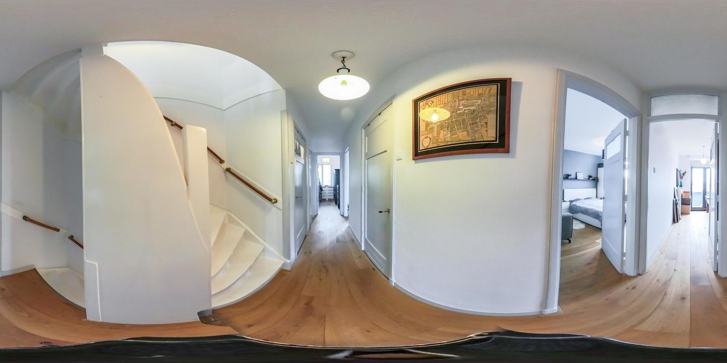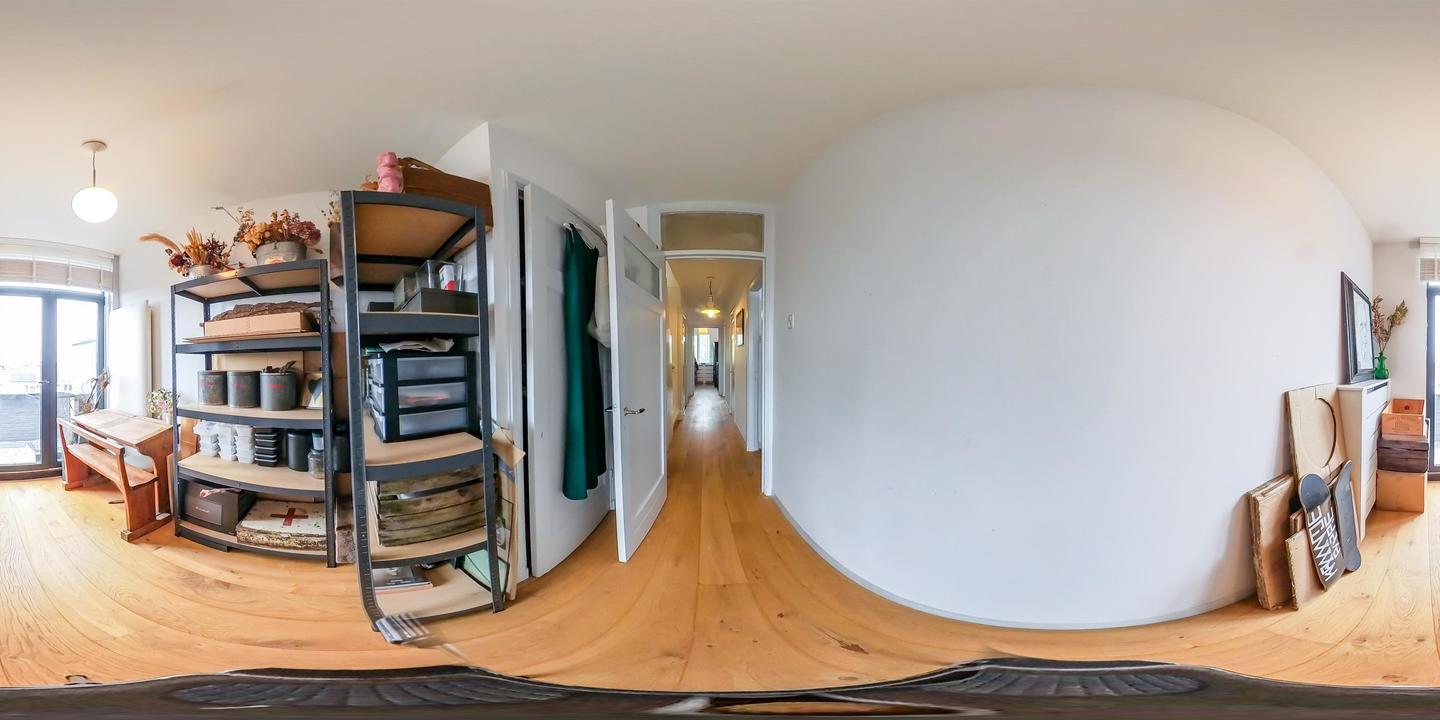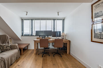 Overloop met toegang tot de waskamer met dakkapel, aansluiting voor wasmachine en droger, en kast met opstelplaats voor de cv-combiketel. Aansluitend een grote multifunctionele ruimte over de volle lengte van de woning, momenteel de master bedroom met een werkplek in de dakkapel, met modern toilet (vrijhangend closet), twee grote Velux dakramen aan de voorzijde en een dakkapel aan de achterzijde met fraai uitzicht richting de skyline van Den Haag. Deze ruimte is eenvoudig te verdelen in twee grote slaapkamers. De gehele verdieping is afgewerkt met een eikenhouten parketvloer.