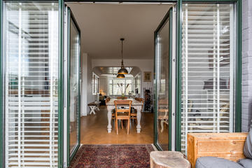 - Deels voorzien van aluminium, deels kunststof en deels houten kozijnen, voorzien van dubbel glas en HR++ glas