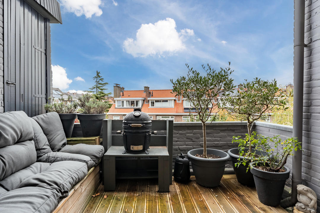 WOON EN GENIET van dit sfeervolle en karakteristieke DRIEDUBBEL bovenhuis (ca. 194m2) met drie woonlagen, prachtige glas-in-looddetails, balkons aan voor- en achterzijde en een multifunctionele zolderverdieping met panoramisch uitzicht over de SKYLINE van Den Haag. De woning biedt een royale woonkamer met open keuken, vijf slaapkamers en de mogelijkheid tot het creëren van een zesde slaapkamer, dit is eenvoudig te realiseren, moderne badkamer en meerdere balkons — ideaal voor wie ruimte en comfort zoekt. Gelegen aan de brede en groene Thorbeckelaan met in de middenberm over de hele lengte bomenrijen en grasperken in de geliefde Vruchtenbuurt, op loopafstand van winkels, openbaar vervoer en sportfaciliteiten, o.a. in de nabij gelegen Bosjes van Pex, op loop- en fietsafstand van de duinen, het strand en de zee en van meerdere kinderdagverblijven en scholen waaronder de Internationale School van Den Haag. De uitvalswegen richting A4 en A12 zijn goed bereikbaar.