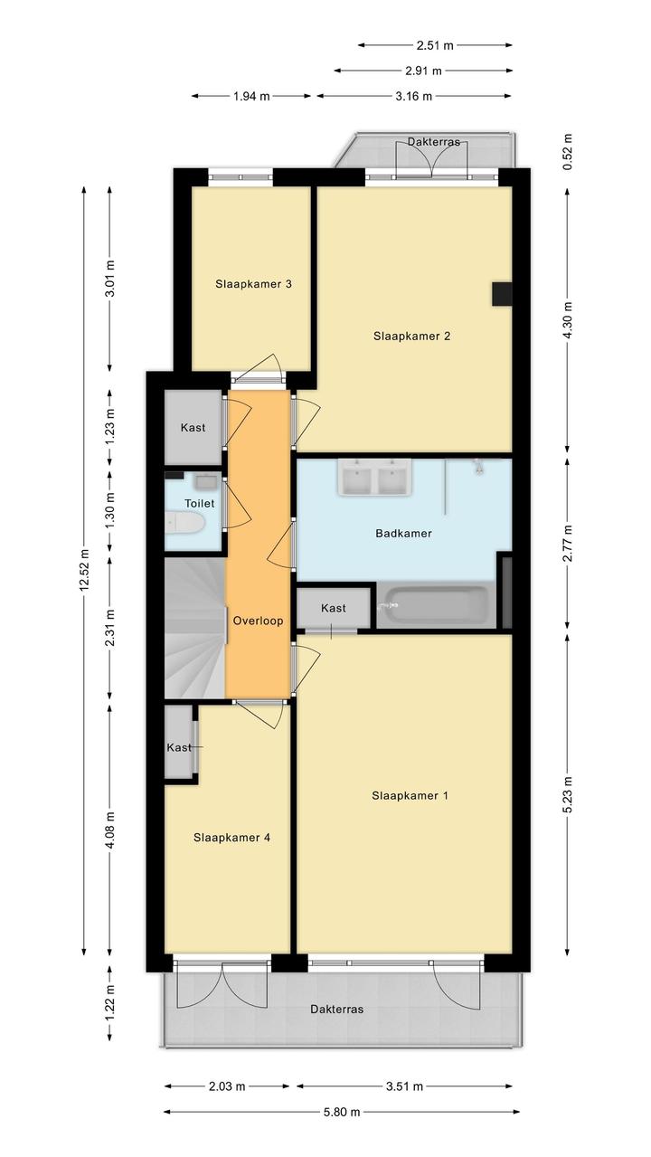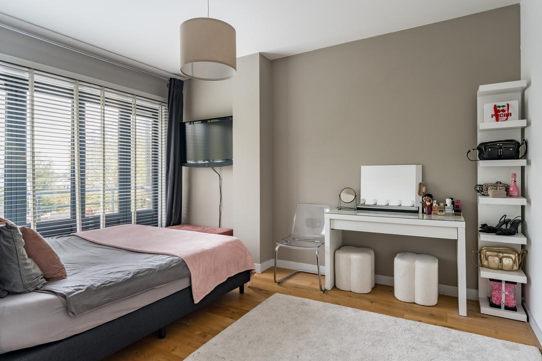 Overloop met toilet met fontein en vaste kast. Aan de voorzijde een voorzijkamer, ideaal voor gebruik als werkkamer en een ruime slaapkamer met openslaande deuren naar het balkon. De royale badkamer, centraal tussen de slaapkamers gelegen, is luxe uitgevoerd met een ligbad, inloopdouche, dubbele wastafel in meubel, verlichte spiegel, designradiator en mechanische ventilatie. Aan de achterzijde bevinden zich de derde, ruime, slaapkamer met vaste kast en toegang tot het balkon. slaapkamer 4 is tevens aan de achterzijde gelegen en heeft een vaste kast en openslaande deuren naar het balkon.