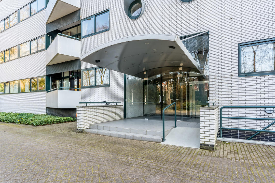 In een rustige en groene omgeving bevindt zich dit ruime en lichte appartement, gelegen op de eerste woonlaag van een verzorgd appartementencomplex. De centrale entree biedt een moderne toegang met een bellen- en brievenbussentableau en een afgesloten hal met zowel een lift als een trap.