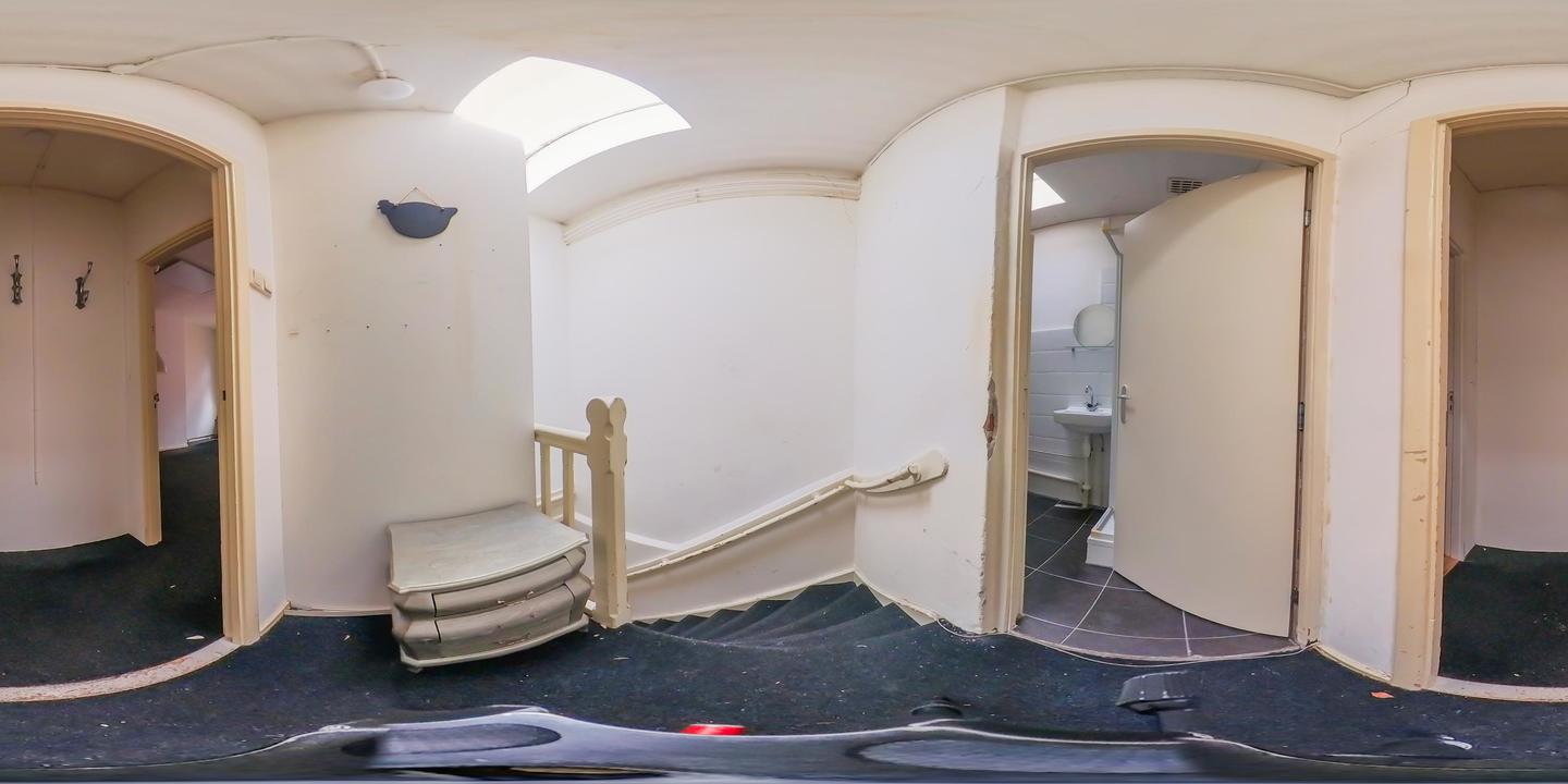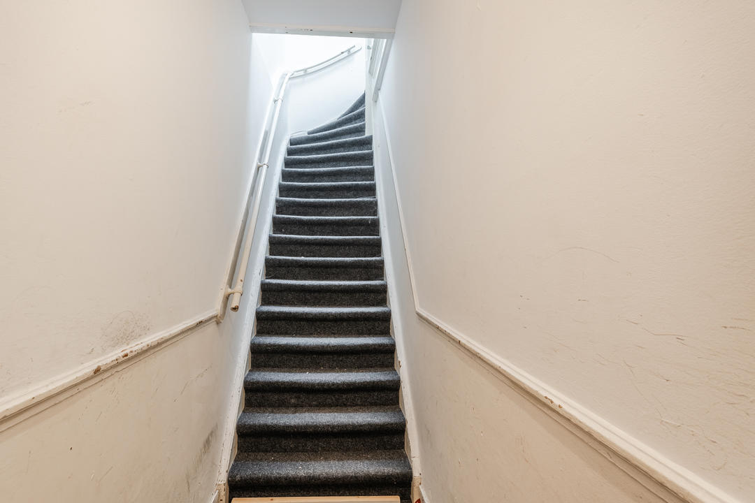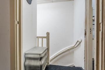 Entree op straatniveau met hal, meterkast en trap naar de 1e verdieping.