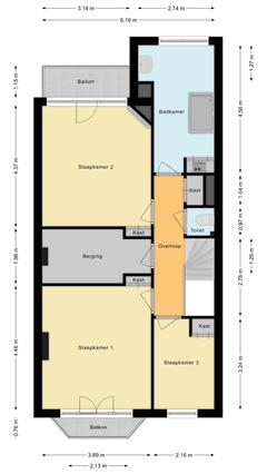 - Plafondhoogte 1e verdieping: ca. 3.19m en de 2e verdieping ca.3.09m2