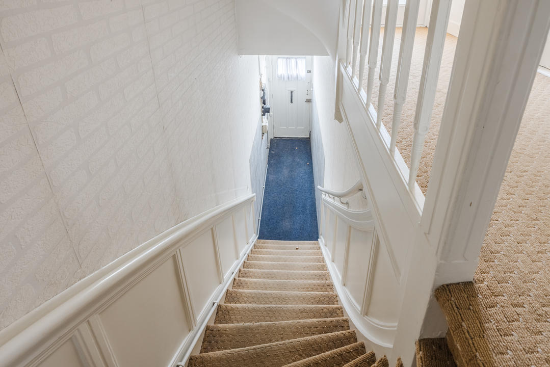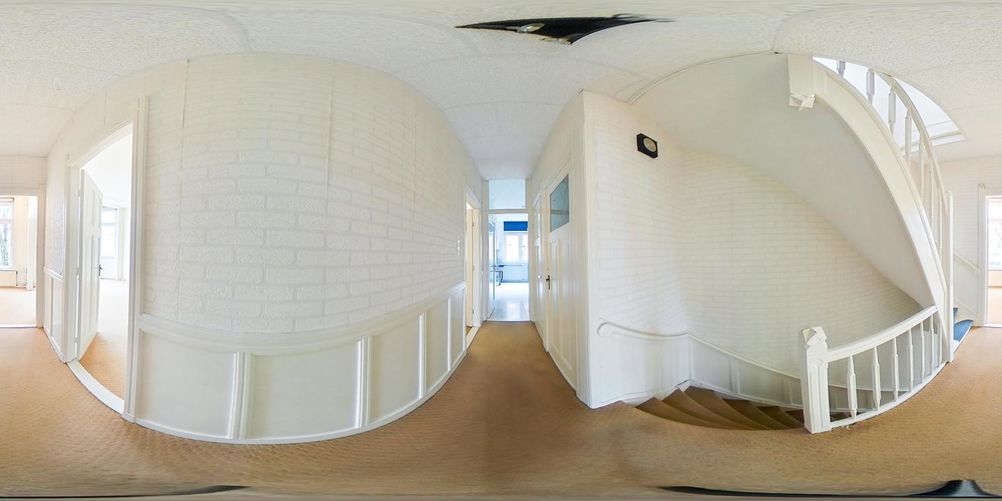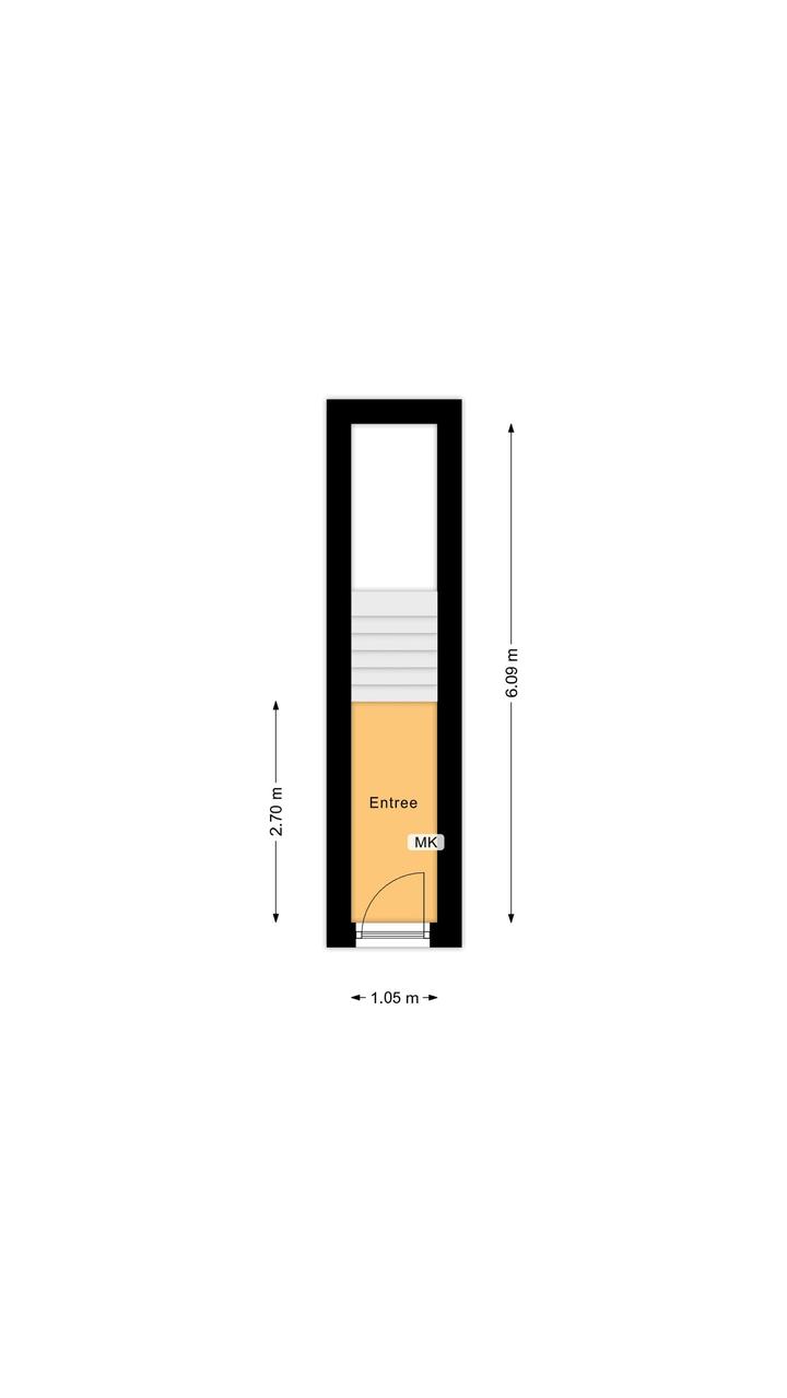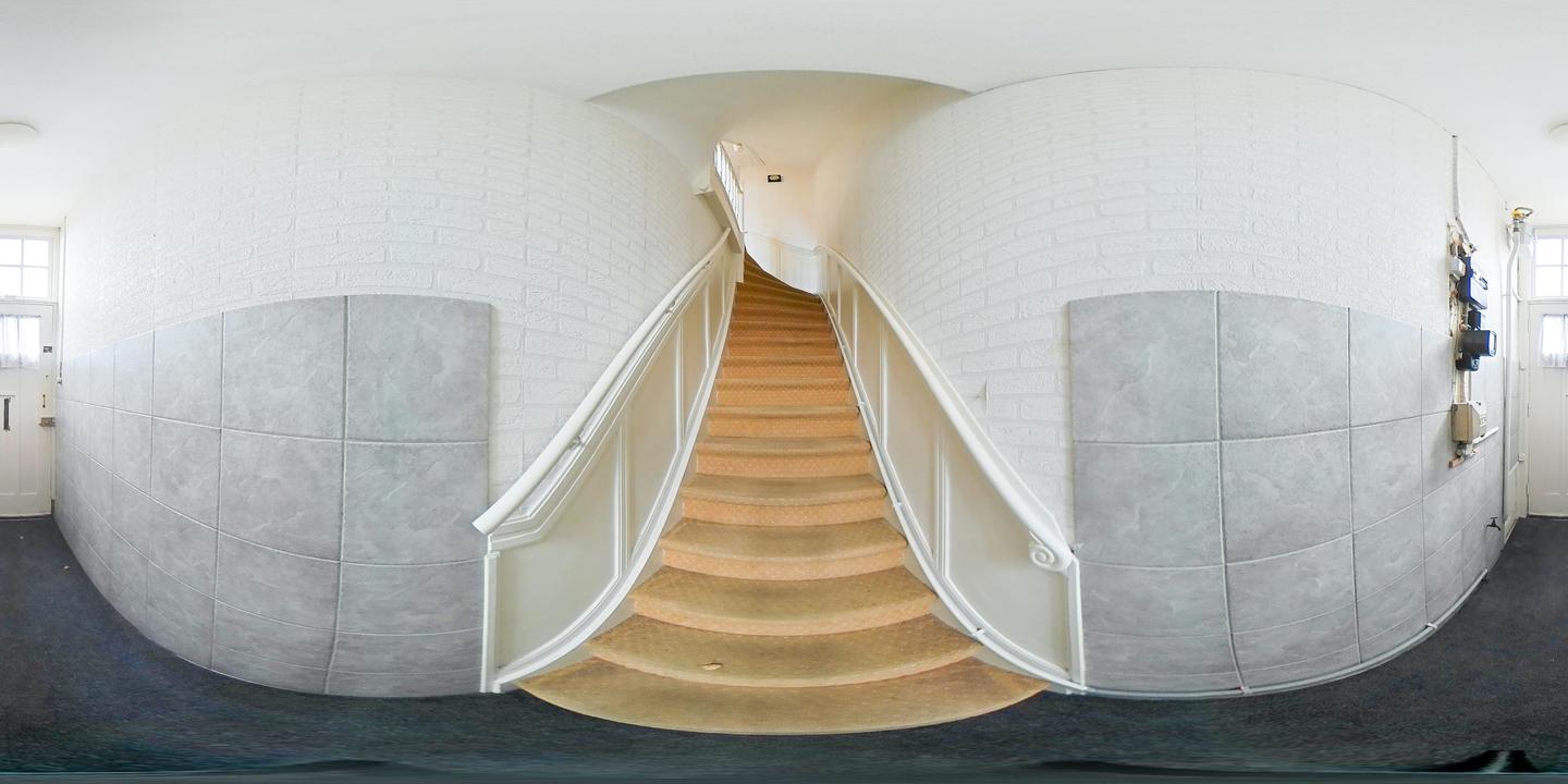 Entree op straatniveau met hal, meterkast en trapopgang naar de eerste verdieping.