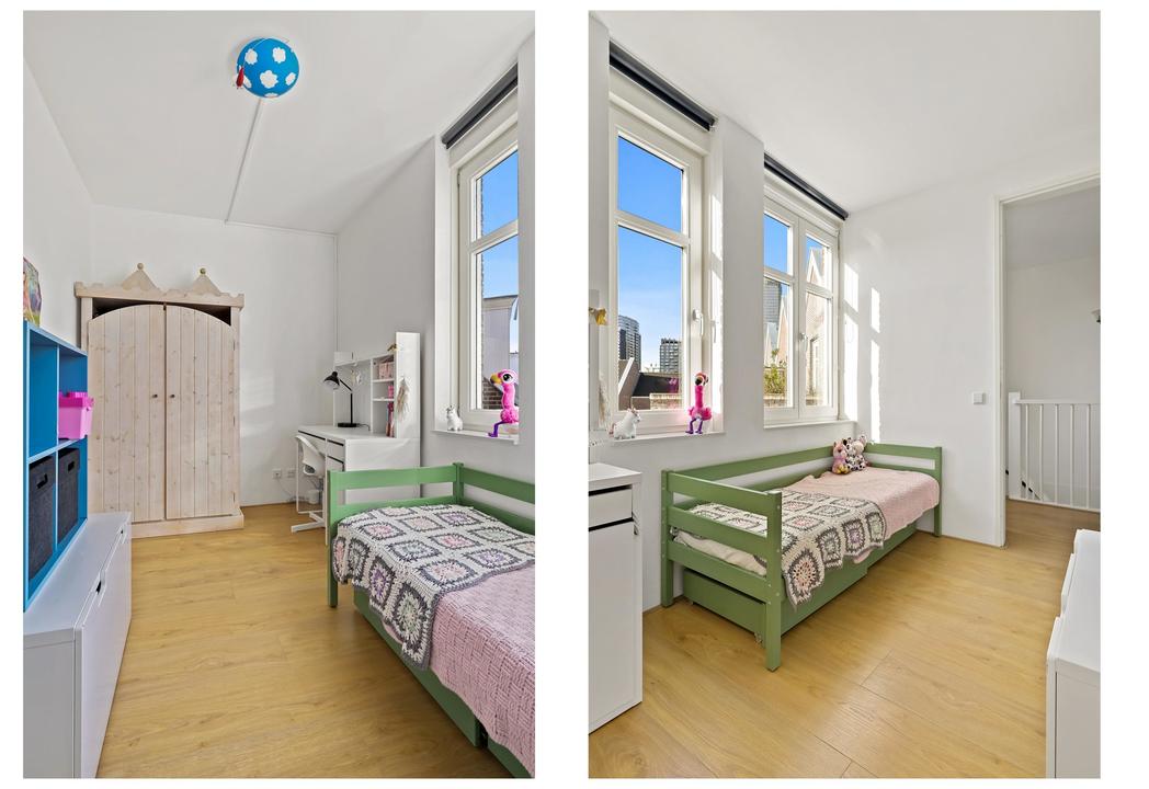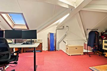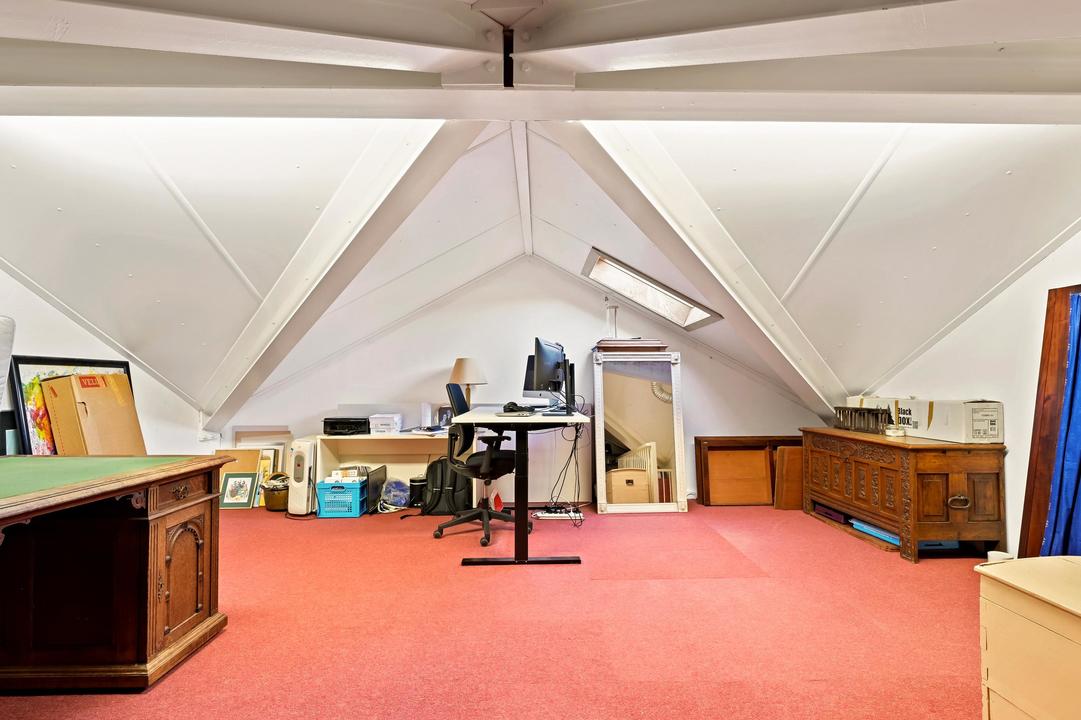 Een verrassend ruime, multifunctionele kapverdieping van circa 27 m˛ met Velux dakraam, welke zich uitstekend leent als speelzolder, thuiskantoor of extra slaapkamer.