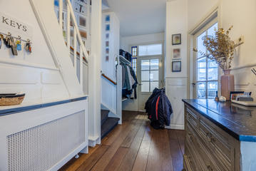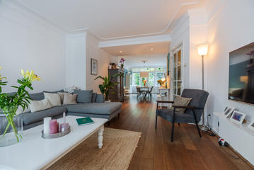 - De begane grond is voorzien van een eiken houten parkervloer, de 1e en 2e verdieping is grotendeels voorzien van een massief houten vloer welke wit is gelakt