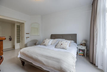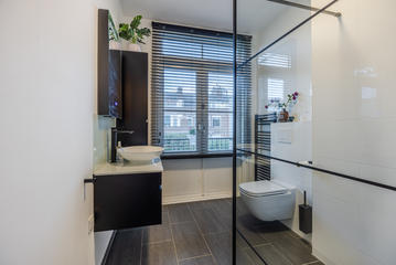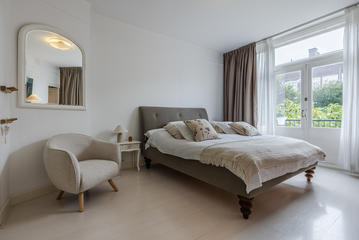 Overloop met toilet, voorzien van vrijhangend toilet en fontein. Kamer en suite, met originele schuifseparatie met vaste kasten en glas-in-lood schuifdeuren, bestaande uit twee kamers. Aan de achterzijde een riante slaapkamer met openslaande deuren naar het balkon over de volle breedte en toegang tot de luxe badkamer. Deze badkamer is uitgerust met een wastafel in meubel, ruime inloopdouche met regen- en handdouche, vrijhangend toilet, mechanische ventilatie en openslaande deuren naar het balkon. Aan de voorzijde een (slaap)kamer, momenteel in gebruik als televisiekamer, en een voorzijkamer met toegang tot balkon.