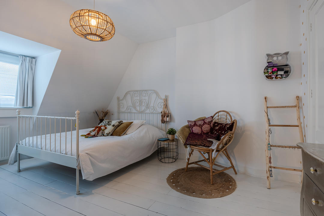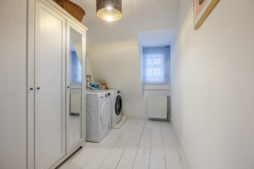 Ruime overloop met daklicht en bergkast met opstelplaats voor cv-ketel en boiler. Tweede moderne badkamer met inloopdouche, wastafel in meubel, vrijhangend toilet, designradiator en openslaande deuren naar het balkon. Vierde slaapkamer met vaste kast en openslaande deuren naar het balkon. Slaapkamer aan de voorzijde met dakkapel en vaste kast. Daarnaast een waskamer aan de voorzijde, voorzien van wasmachine- en drogeraansluiting en dakkapel.